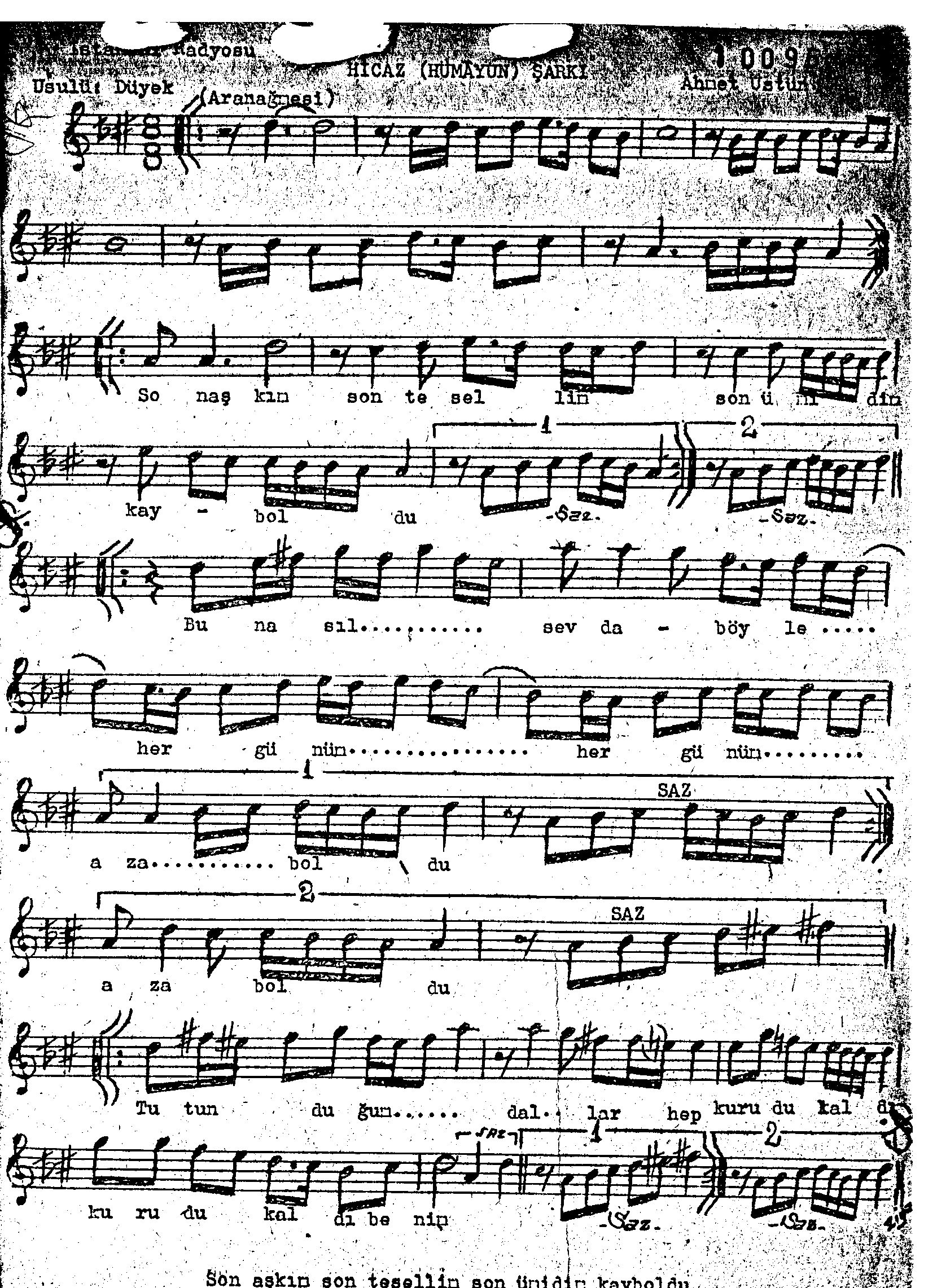 Sarki Adi: Son aşkım son tesellim son ümîdim kayboldu