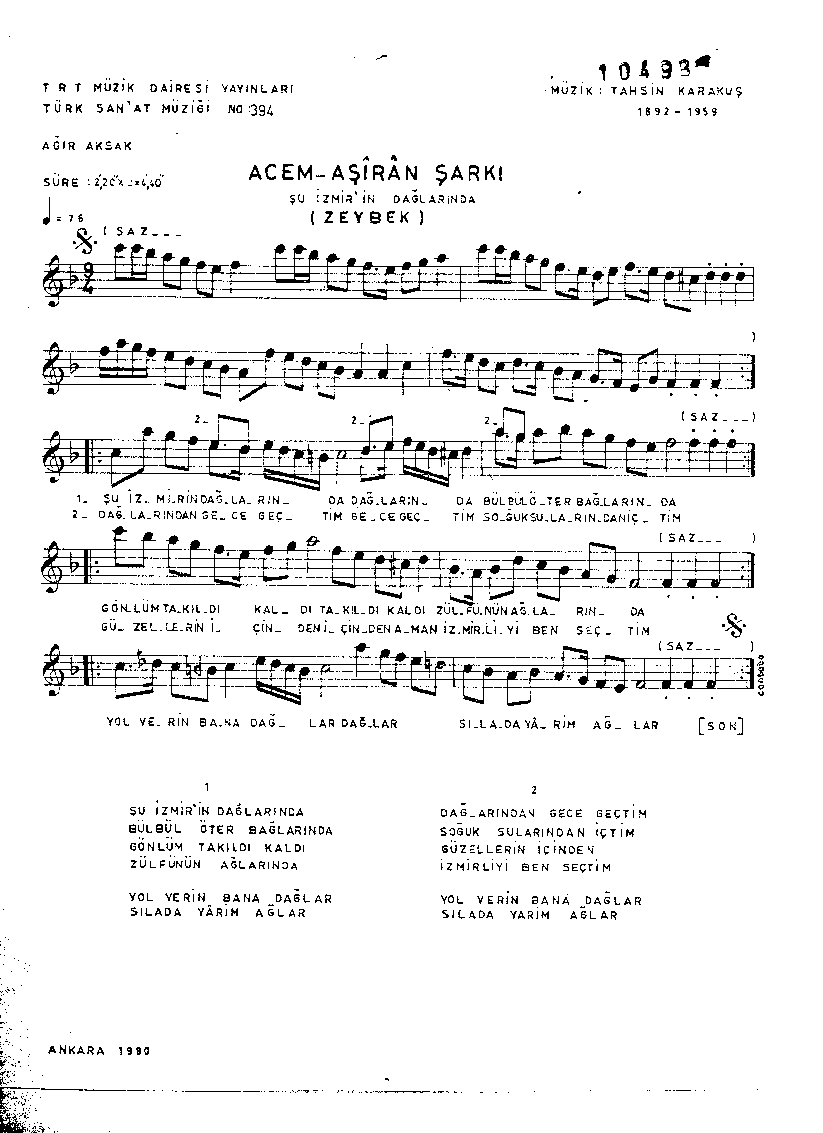 Sarki Adi: Şu İzmir'in dağlarında bülbül öter bağlarında
