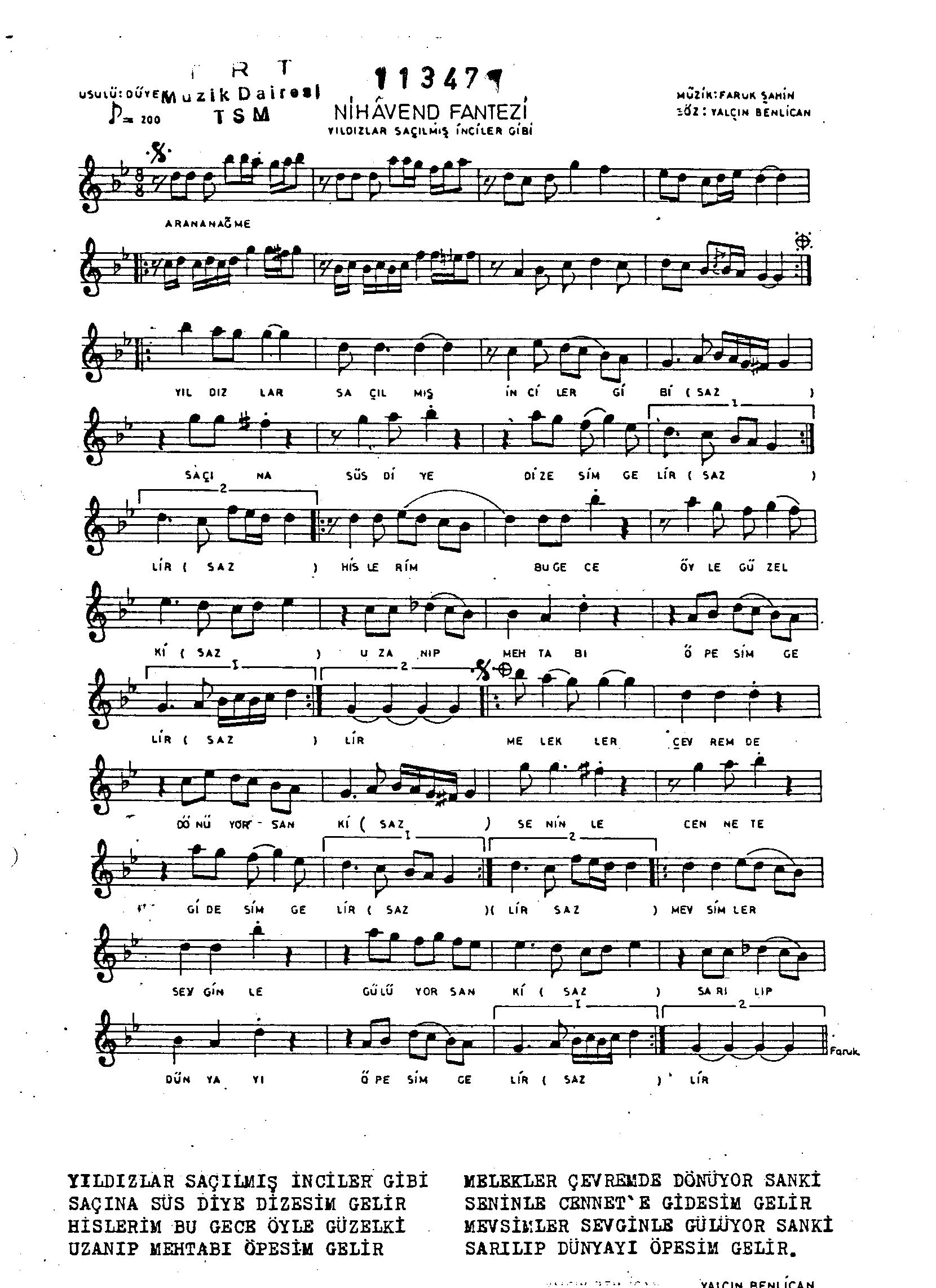 Sarki Adi: Yıldızlar saçılmış inciler gibi