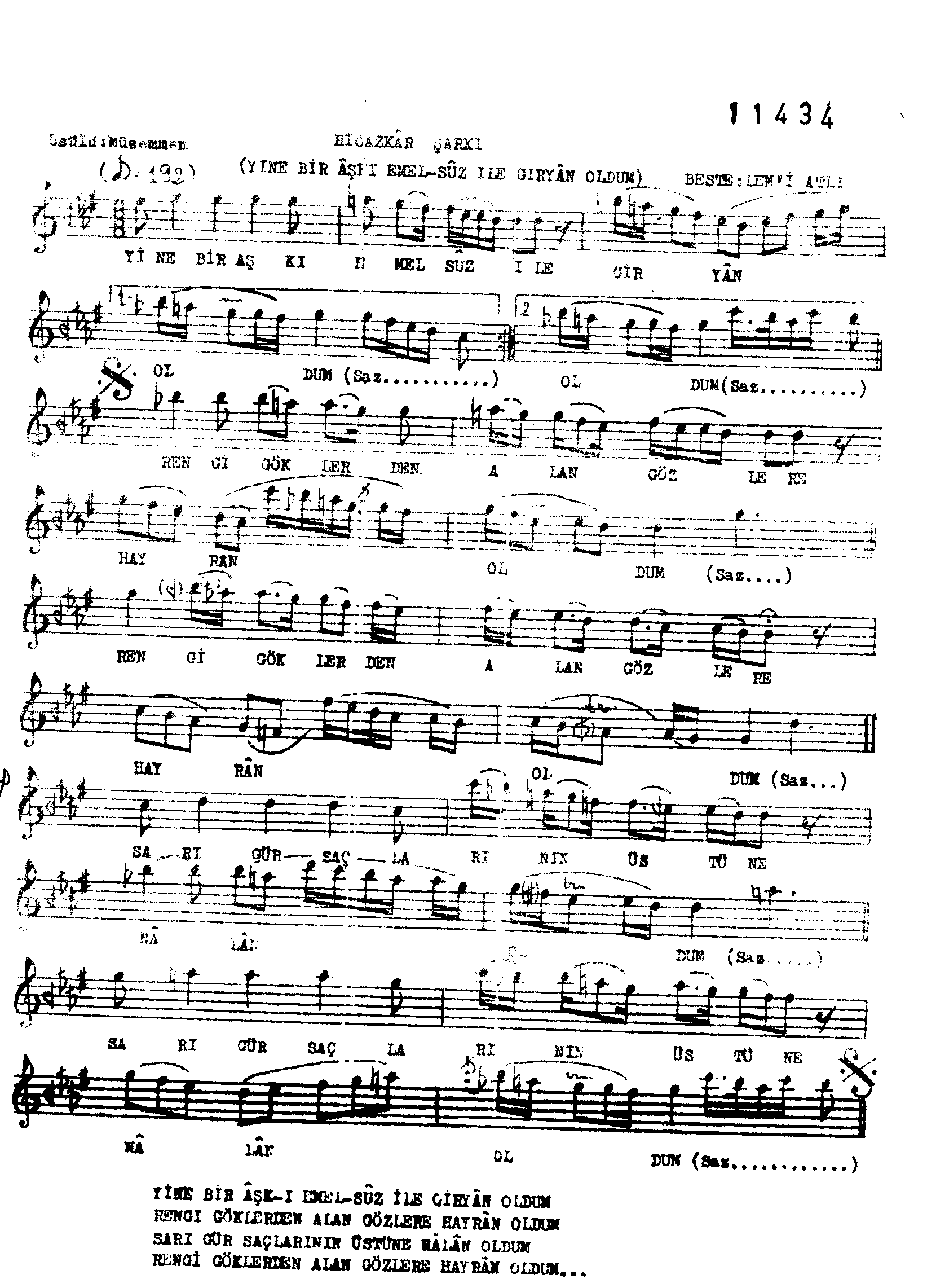 Sarki Adi: Yine bir aşk-ı emel-sûz ile giryân oldum