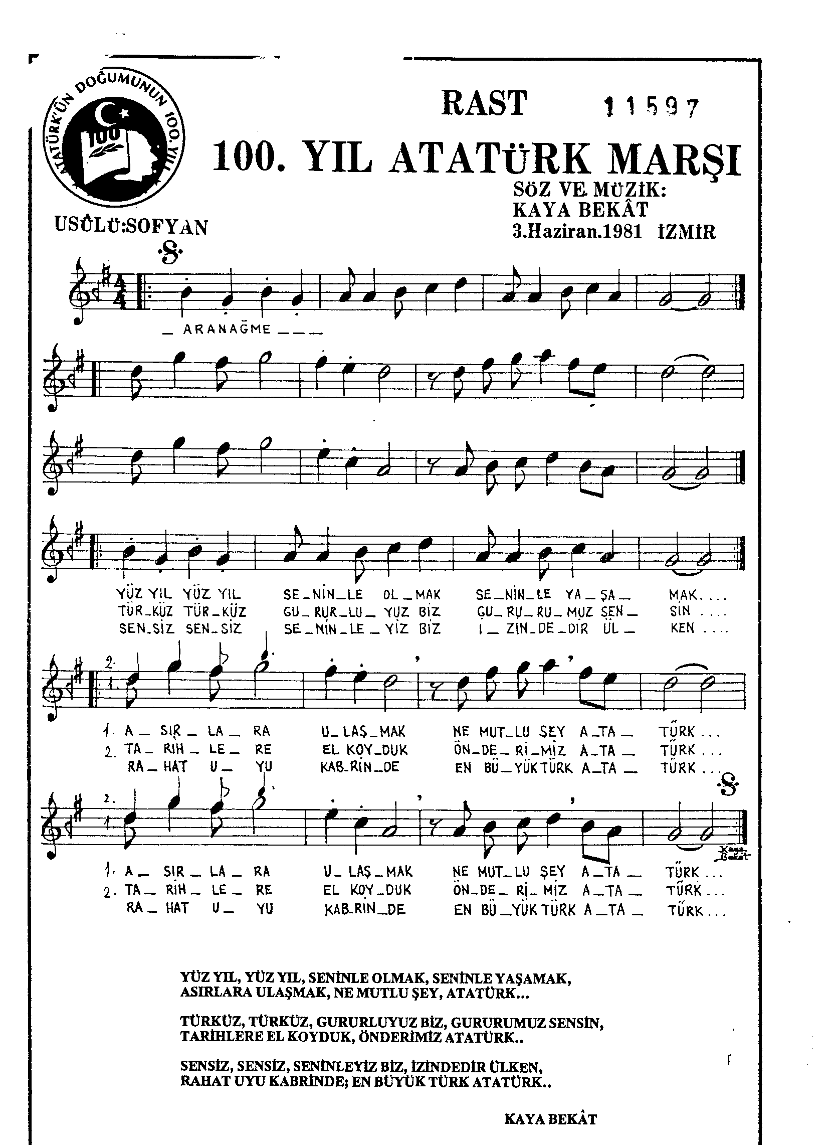 Sarki Adi: Yüz yıl yüz yıl seninle olmak seninle yaşamak (ATATÜRK MARŞI)