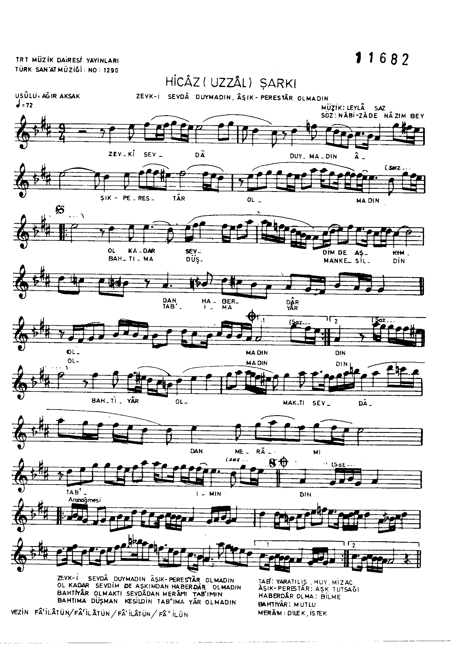 Sarki Adi: Zevk-i sevdâ duymadın âşık-perestâr olmadın
