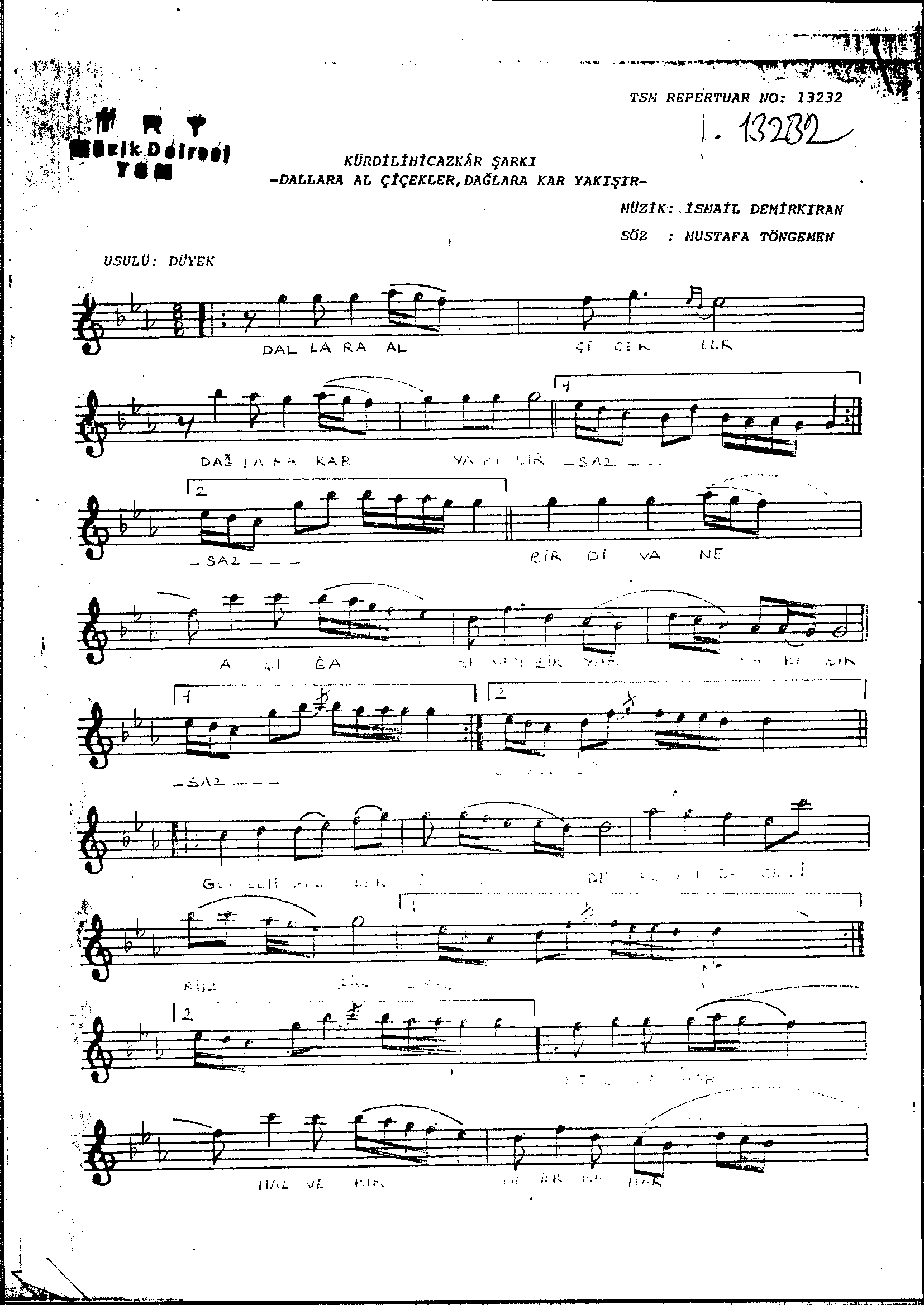 Sarki Adi: Dallara al çiçekler dağlara kar yakışır