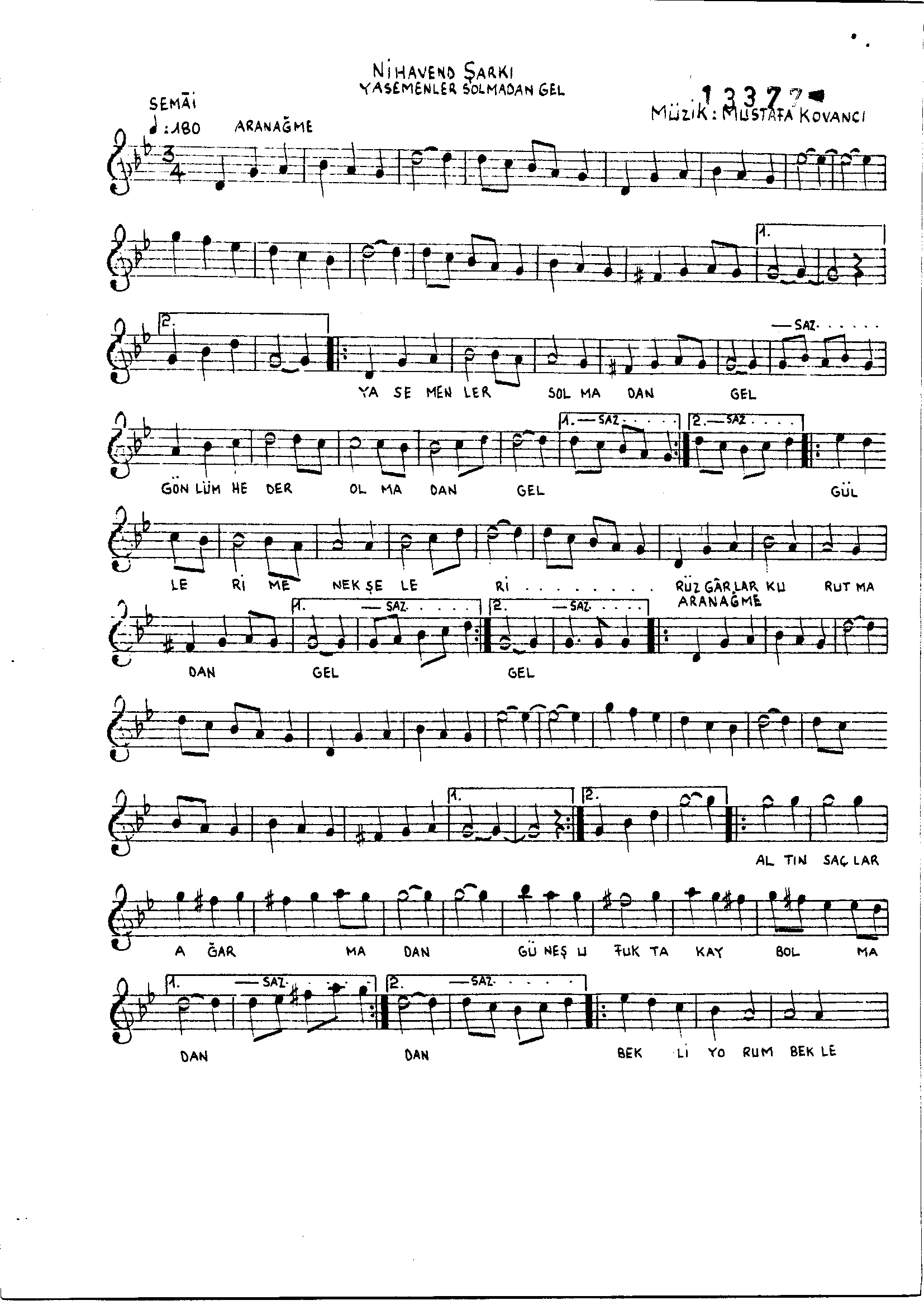 Sarki Adi: Yâsemenler solmadan gel