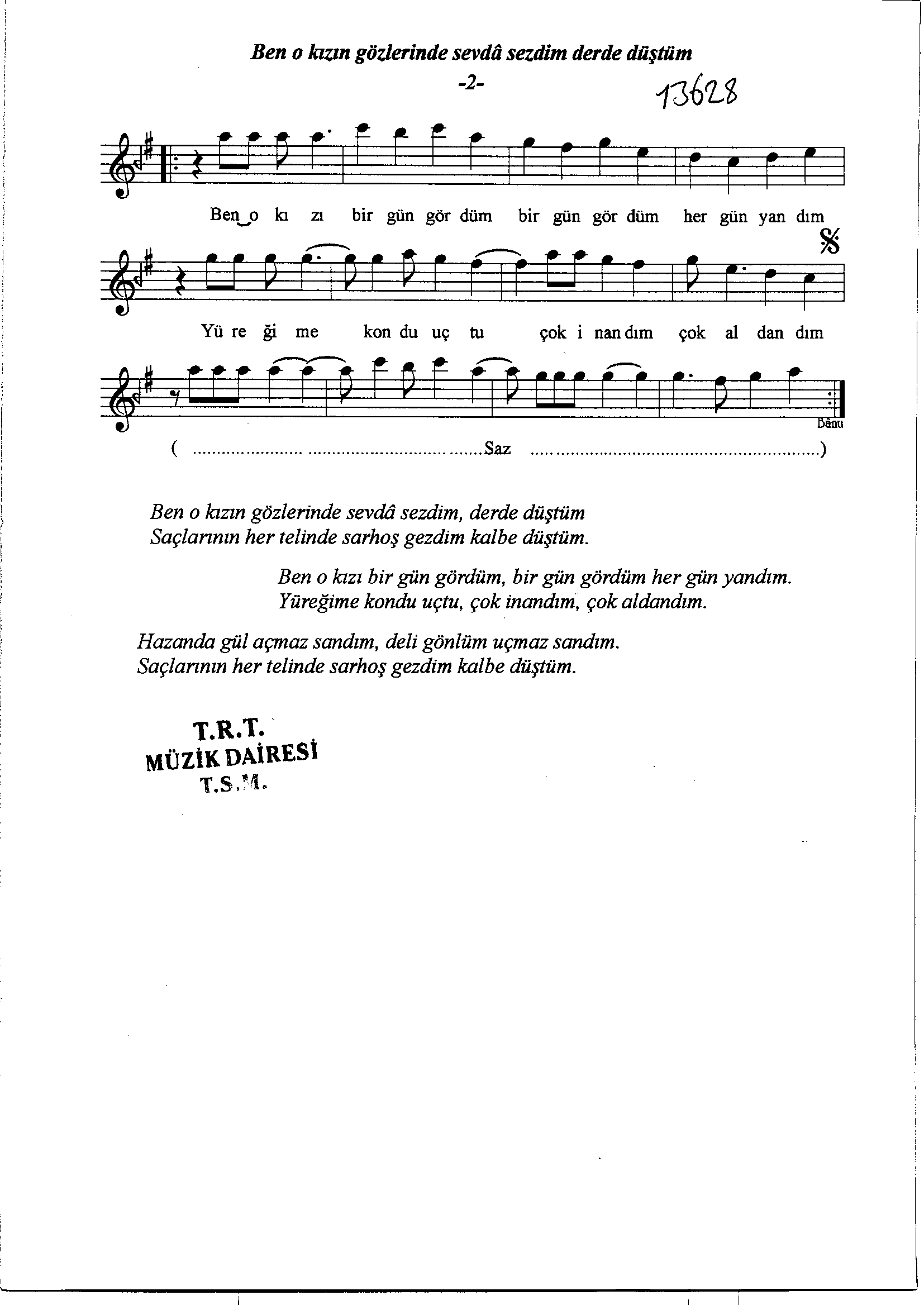 Sarki Adi: Ben o kızın gözlerinde sevdâ sezdim derde düştüm