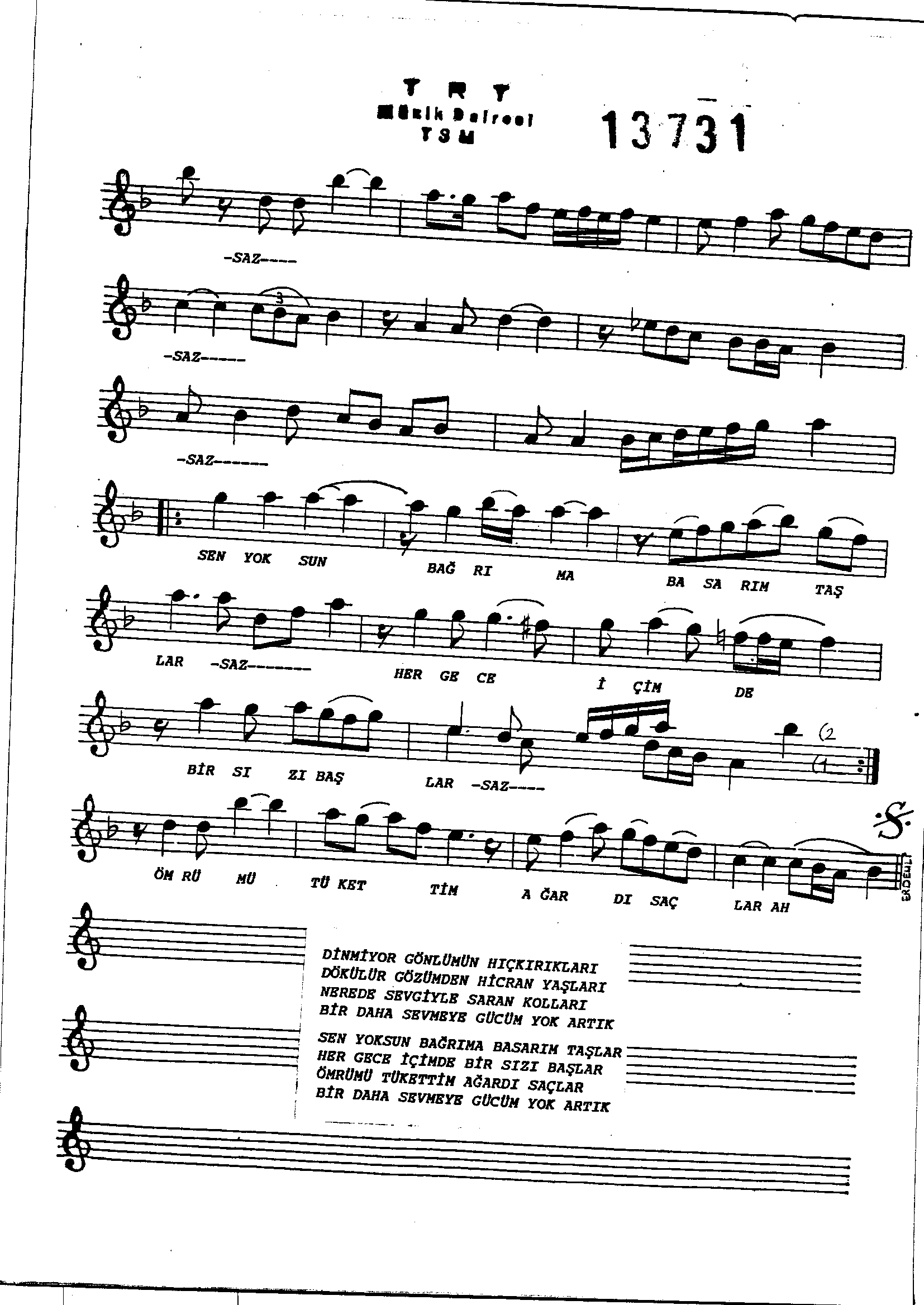 Sarki Adi: Dinmiyor gönlümün hıçkırıkları