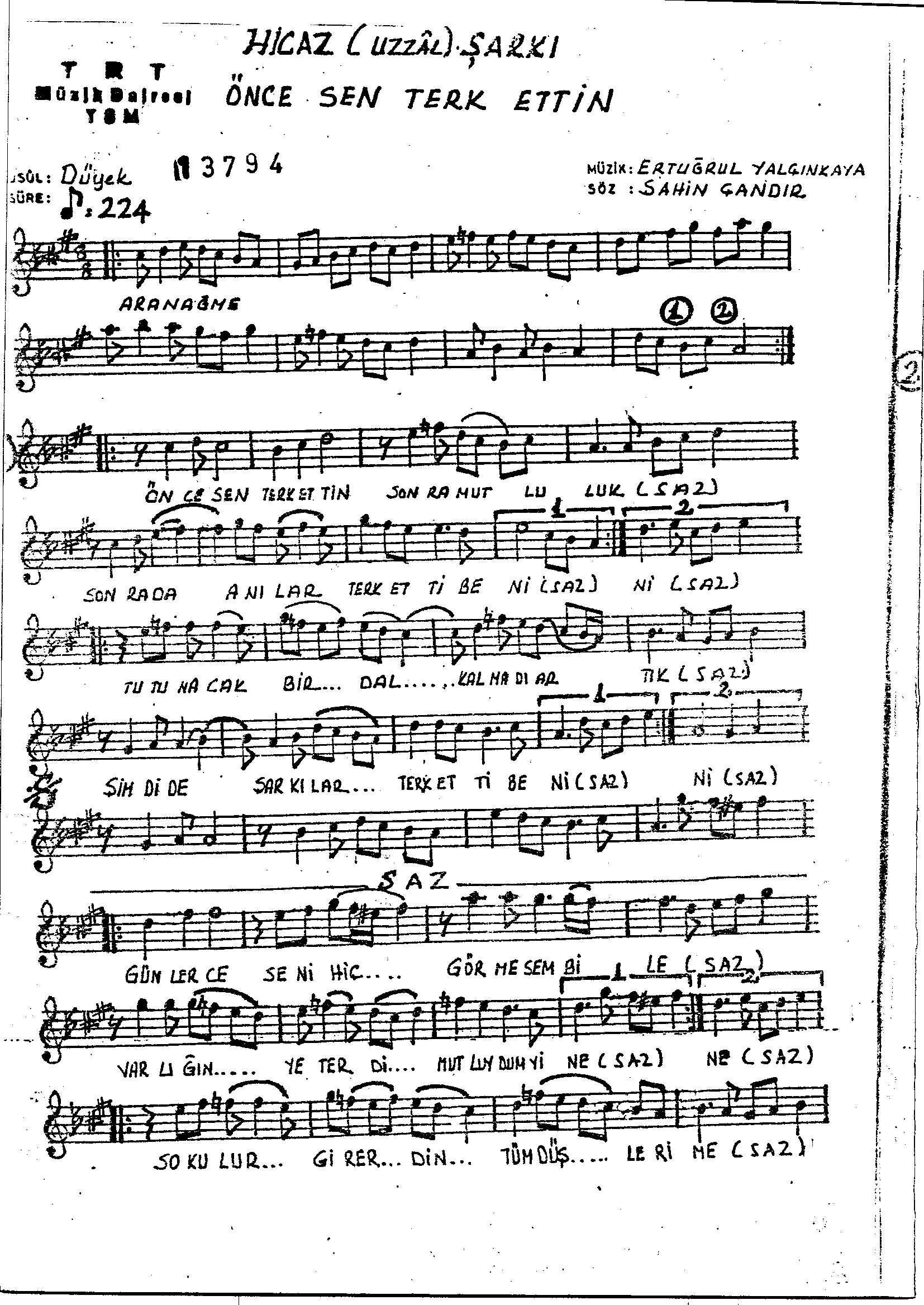 Sarki Adi: Önce sen terkettin sonra mutluluk