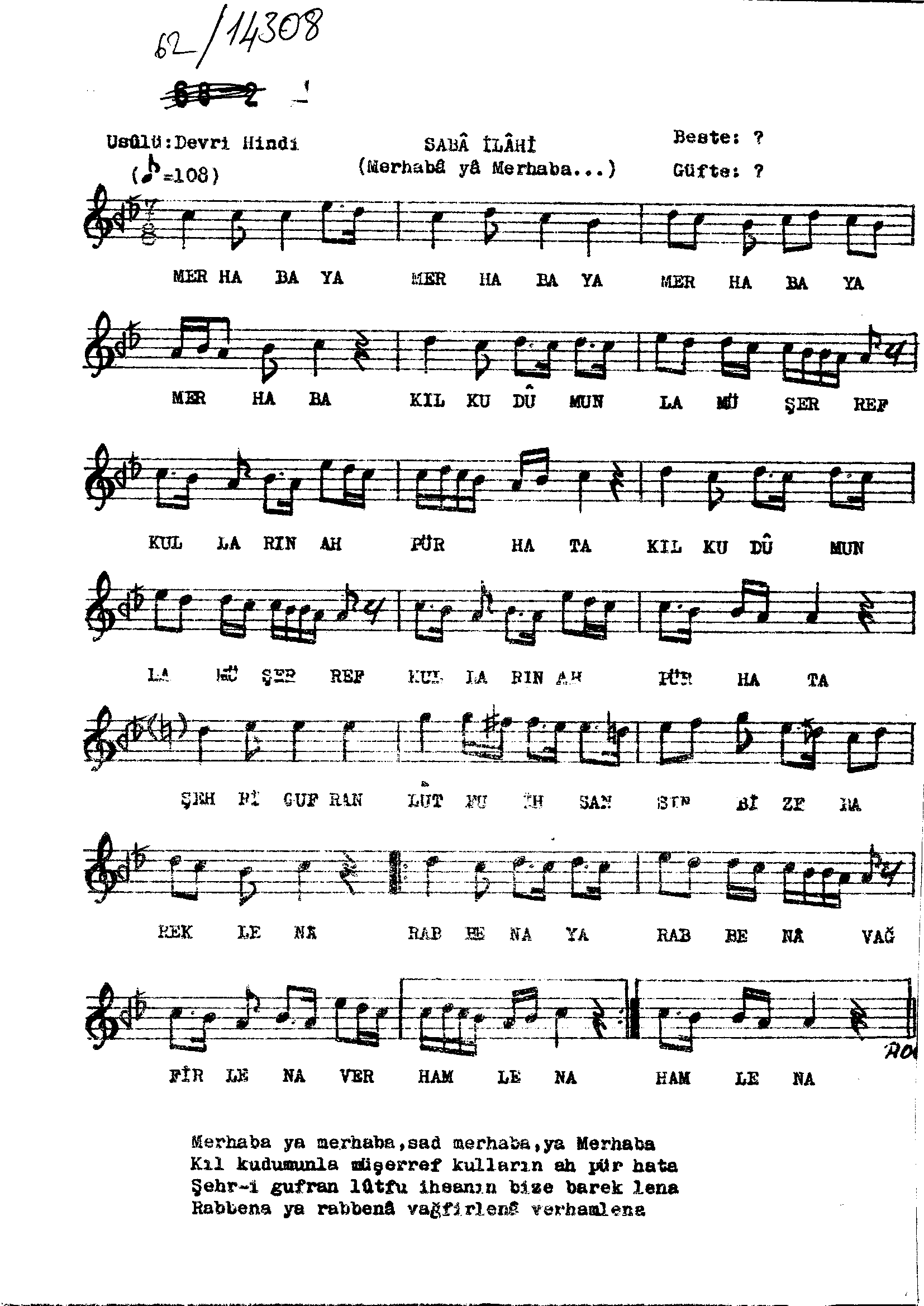 Sarki Adi: Merhabâ yâ merhabâ sad merhabâ yâ merhabâ