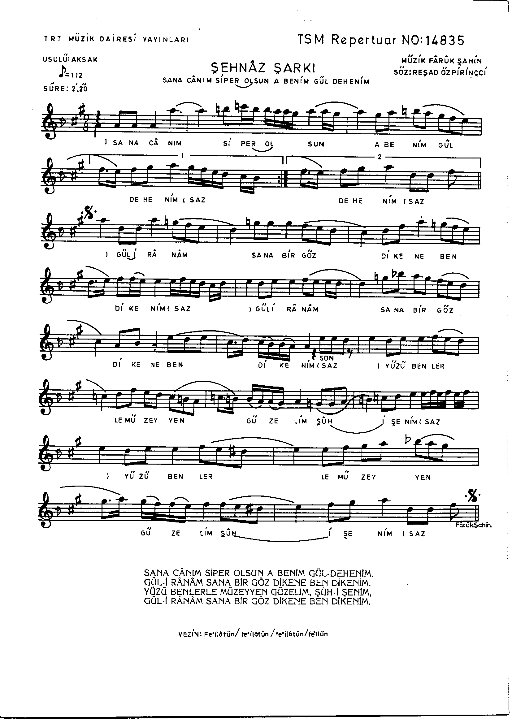 Sarki Adi: Sana canım siper olsun a benim gül-dehenim