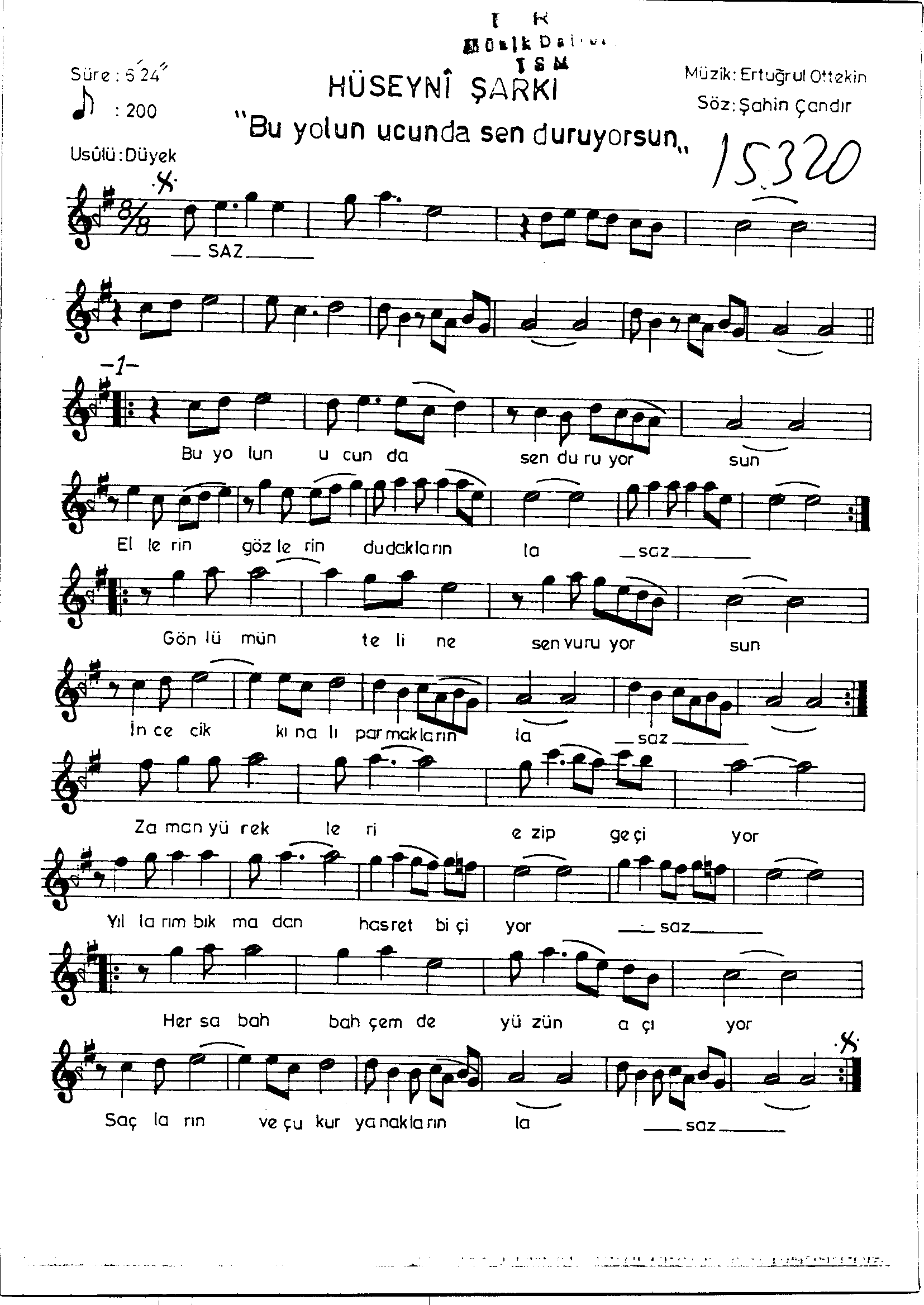 Sarki Adi: Bu yolun ucunda sen duruyorsun ellerin gözlerin dudaklarınla