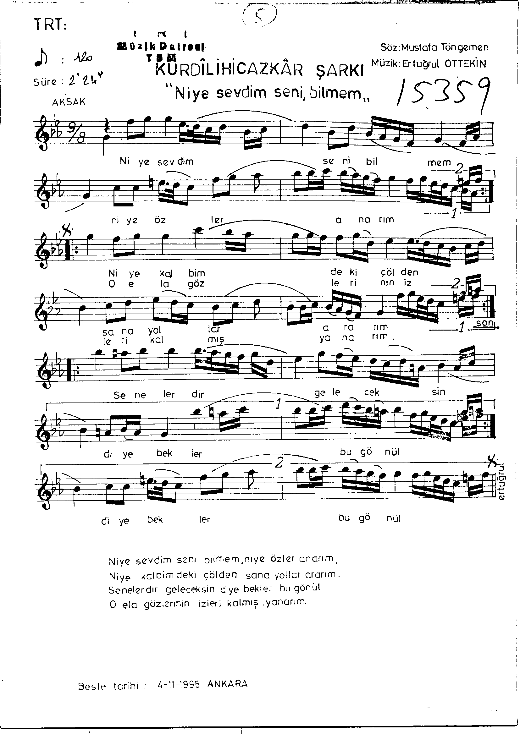 Sarki Adi: Niye sevdim seni bilmem niye özler anarım
