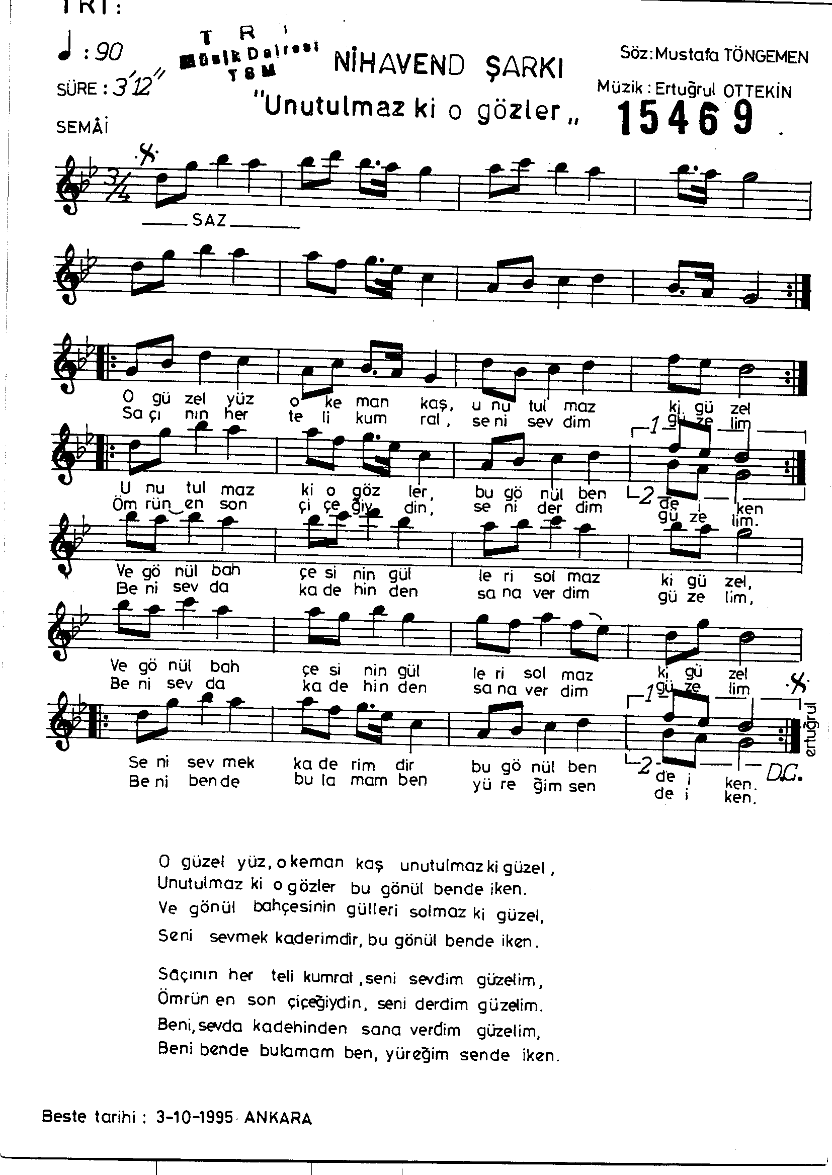 Sarki Adi: O güzel yüz o keman kaş unutulmaz ki güzel