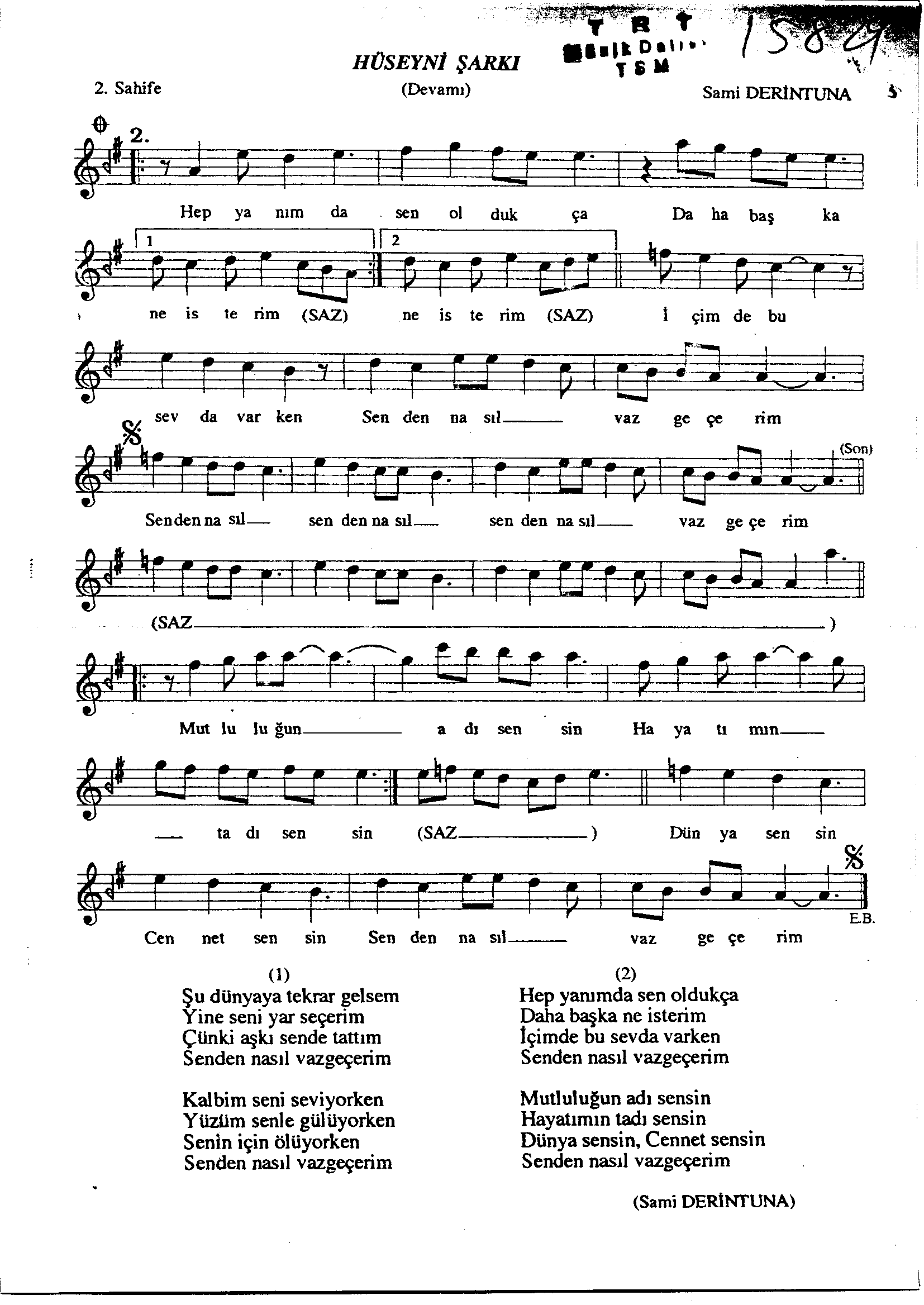 Sarki Adi: Şu dünyaya tekrar gelsem yine seni yâr seçerim