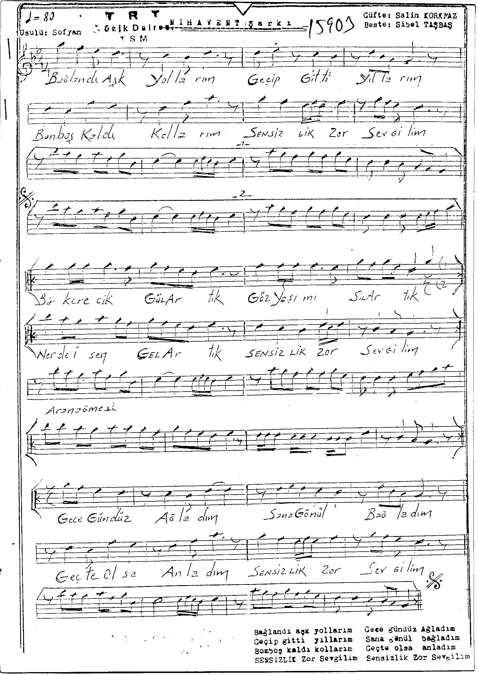 Sarki Adi: Bağlandı aşk yollarım geçip gitti yıllarım