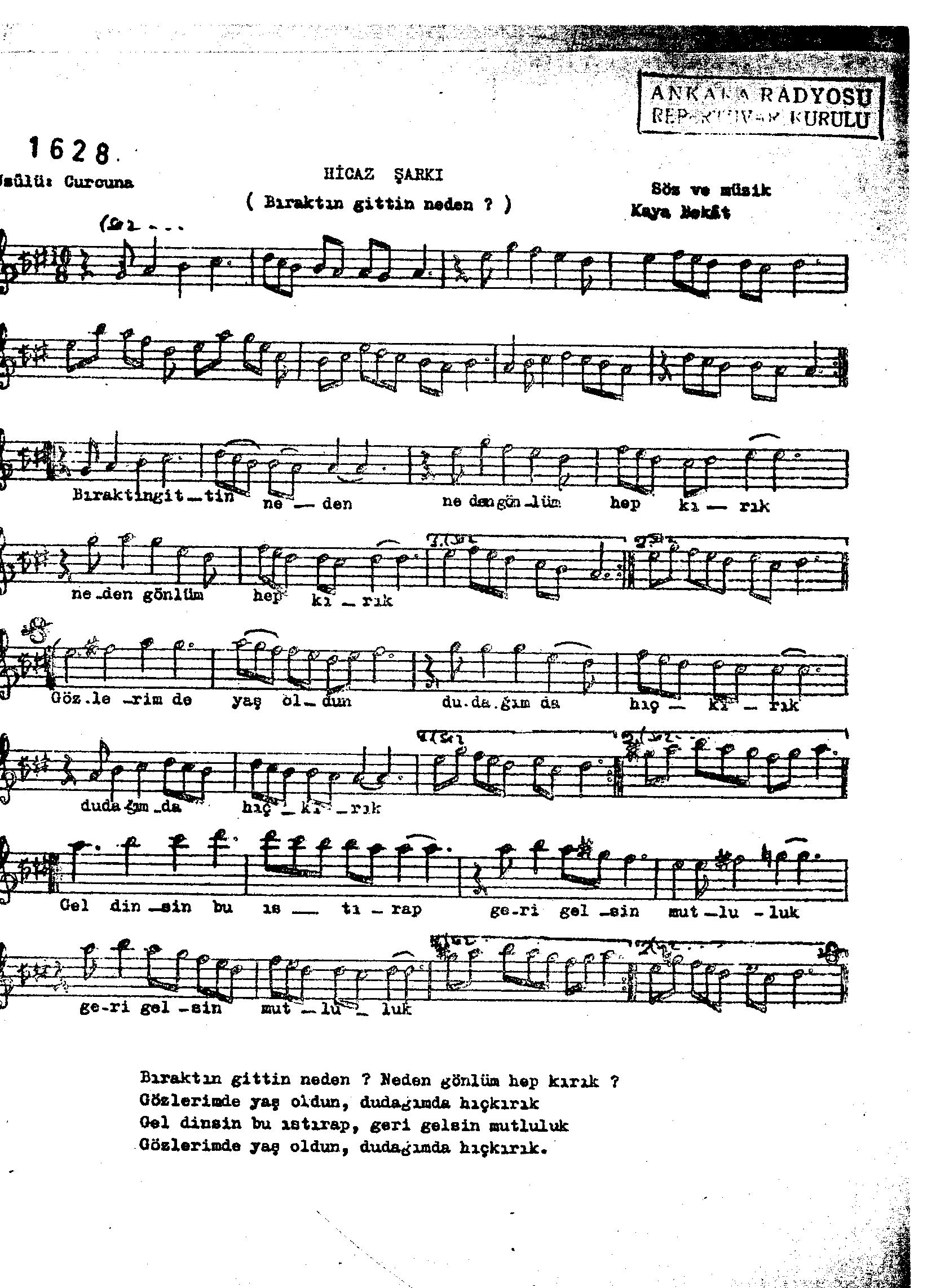 Sarki Adi: Bıraktın gittin neden neden gönlüm hep kırık