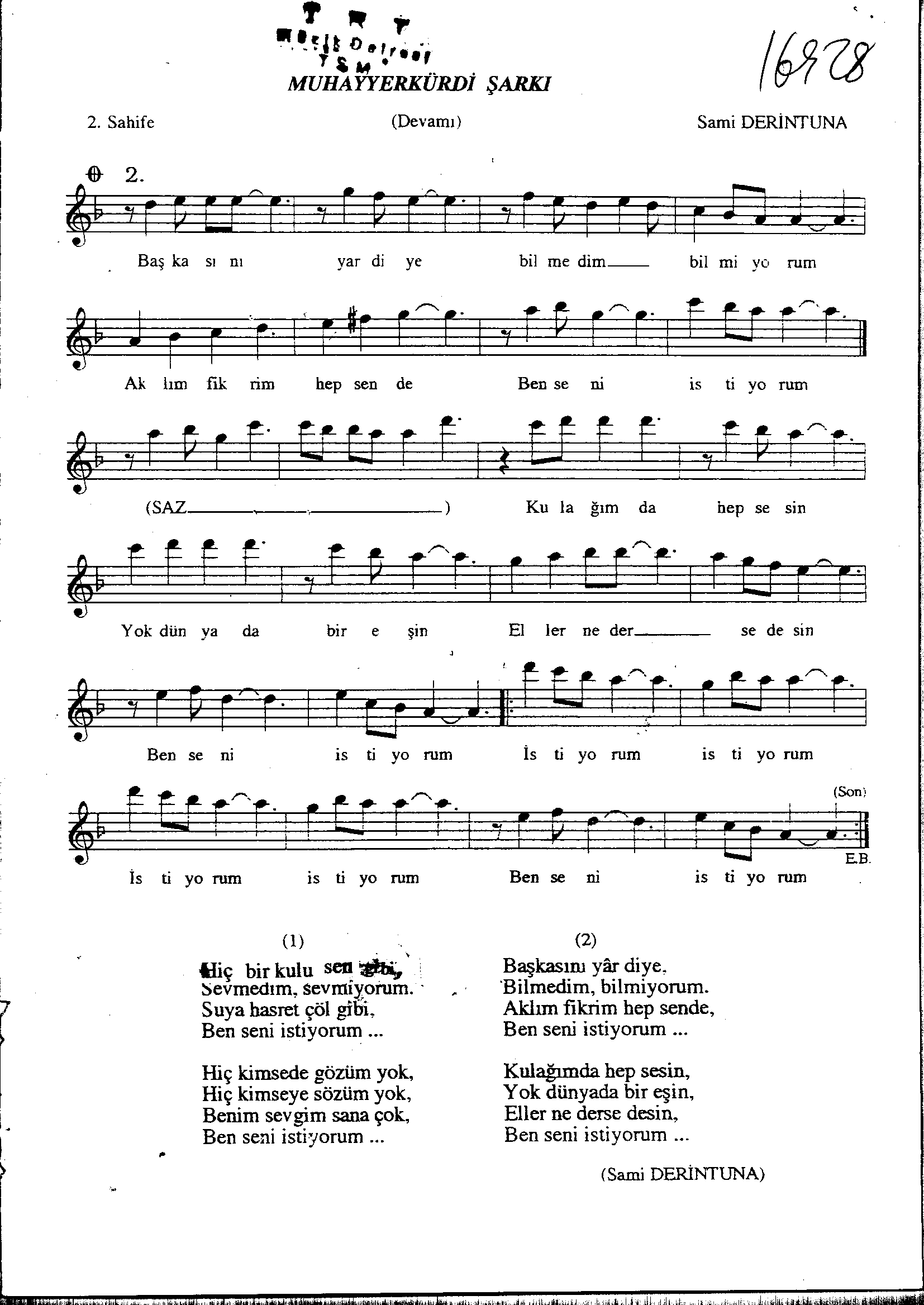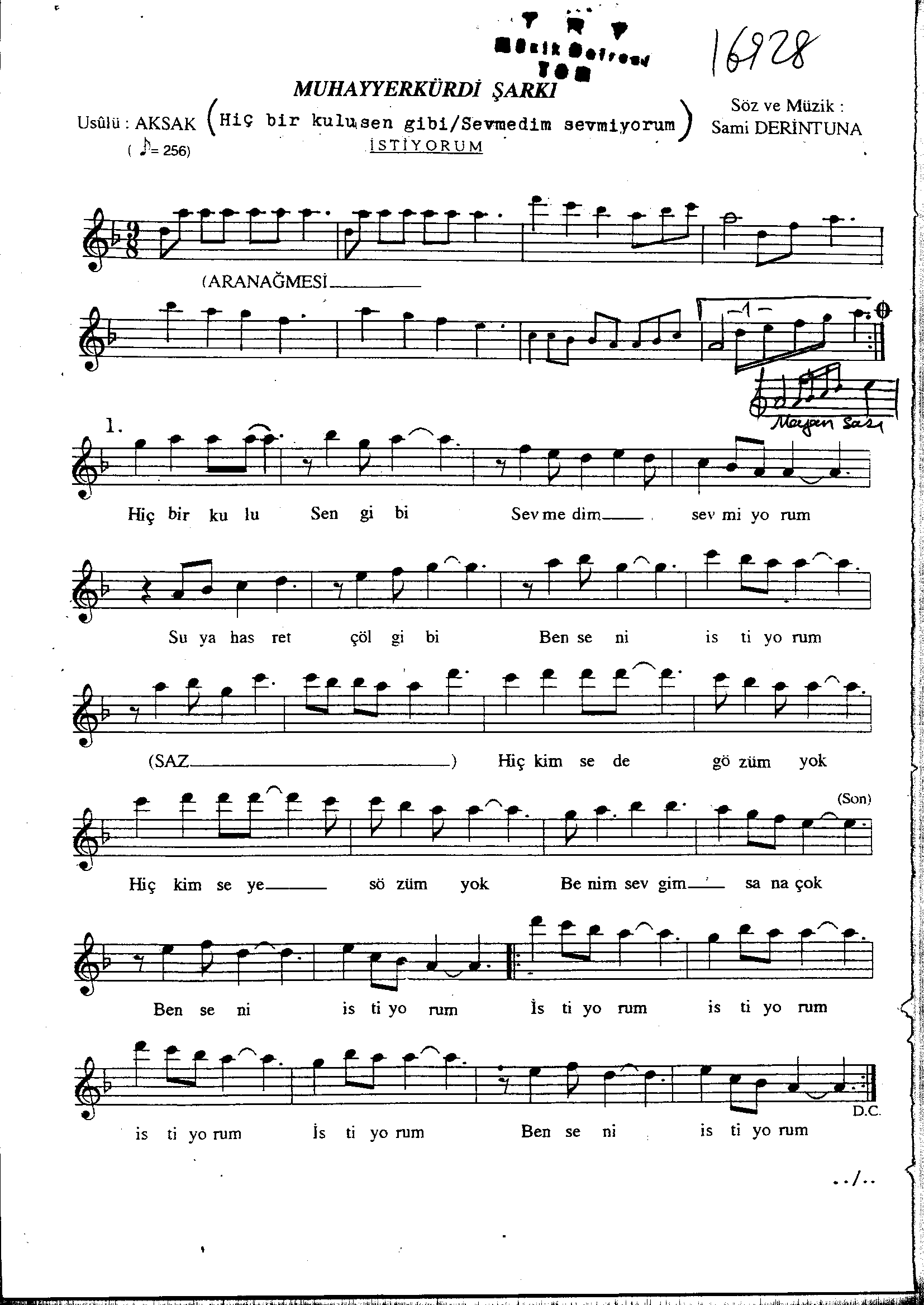 Sarki Adi: Hiç bir kulu sen gibi sevmedim sevmiyorum