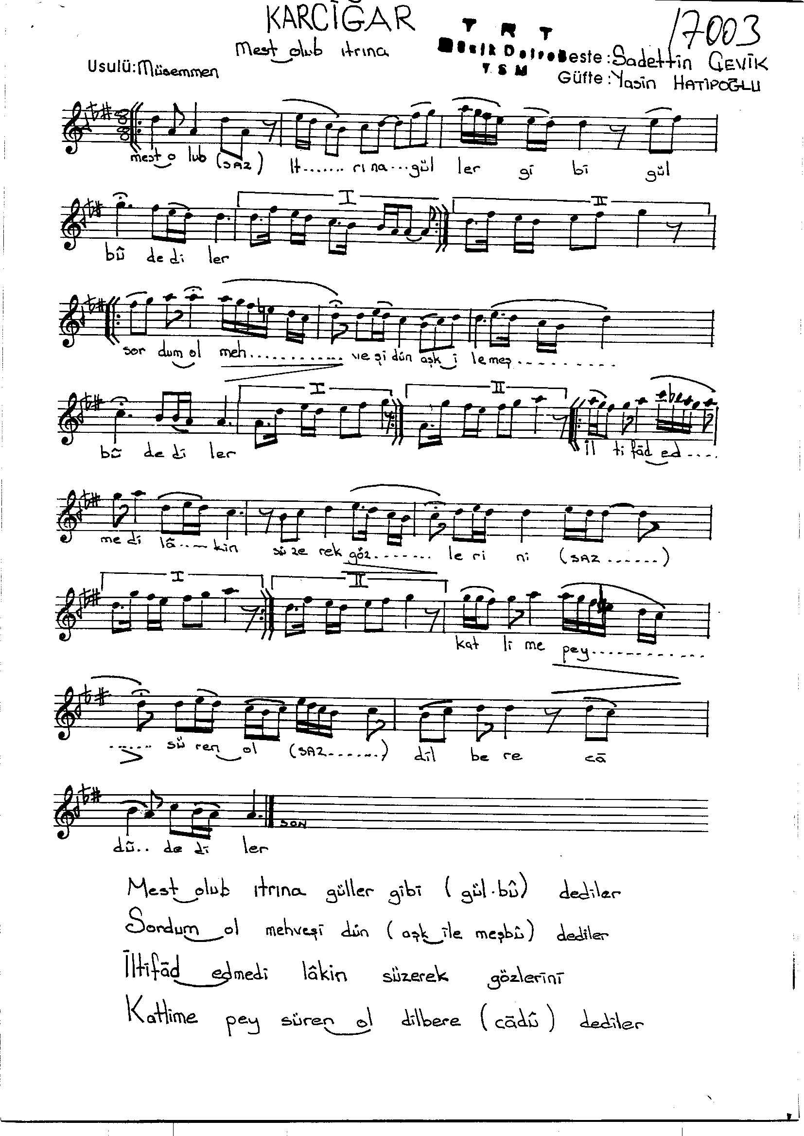 Sarki Adi: Mest olup ıtrına güller gibi gül bû dediler