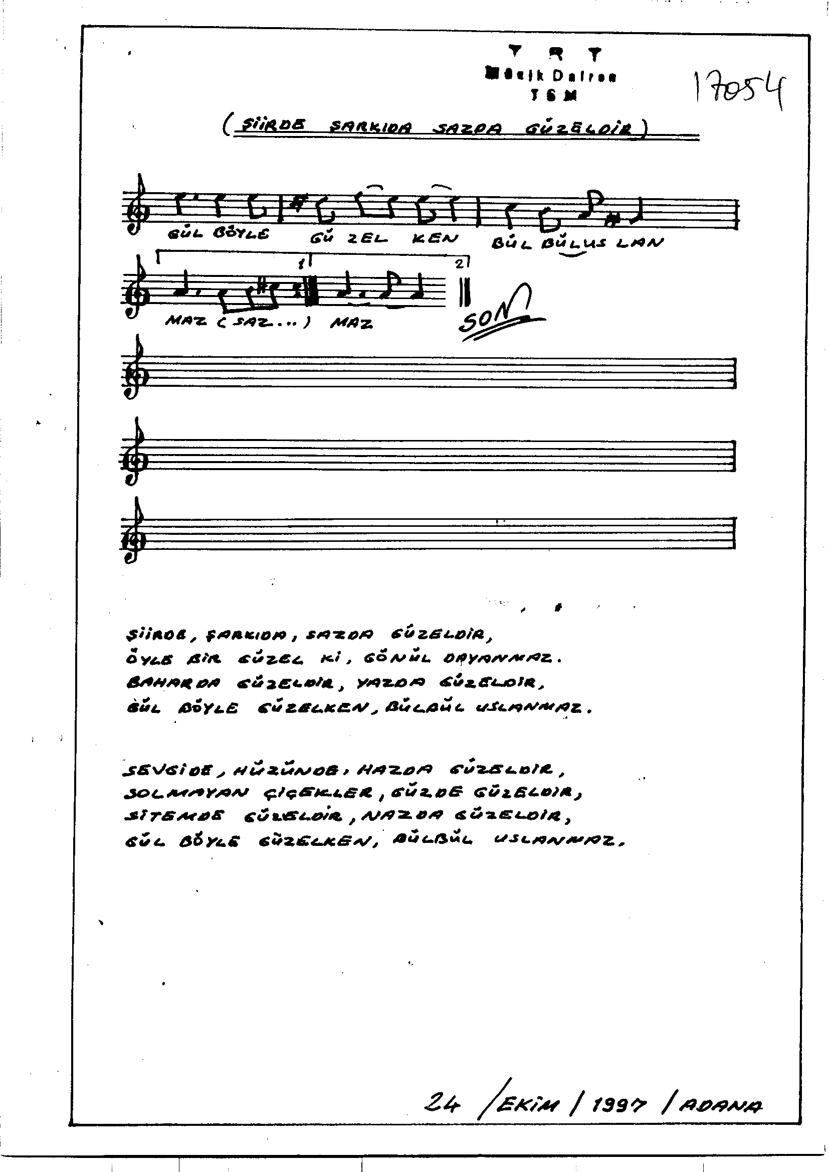 - Sarki Adi: Şiir de şarkı da saz da güzeldir öyle bir güzel ki gönül dayanmaz