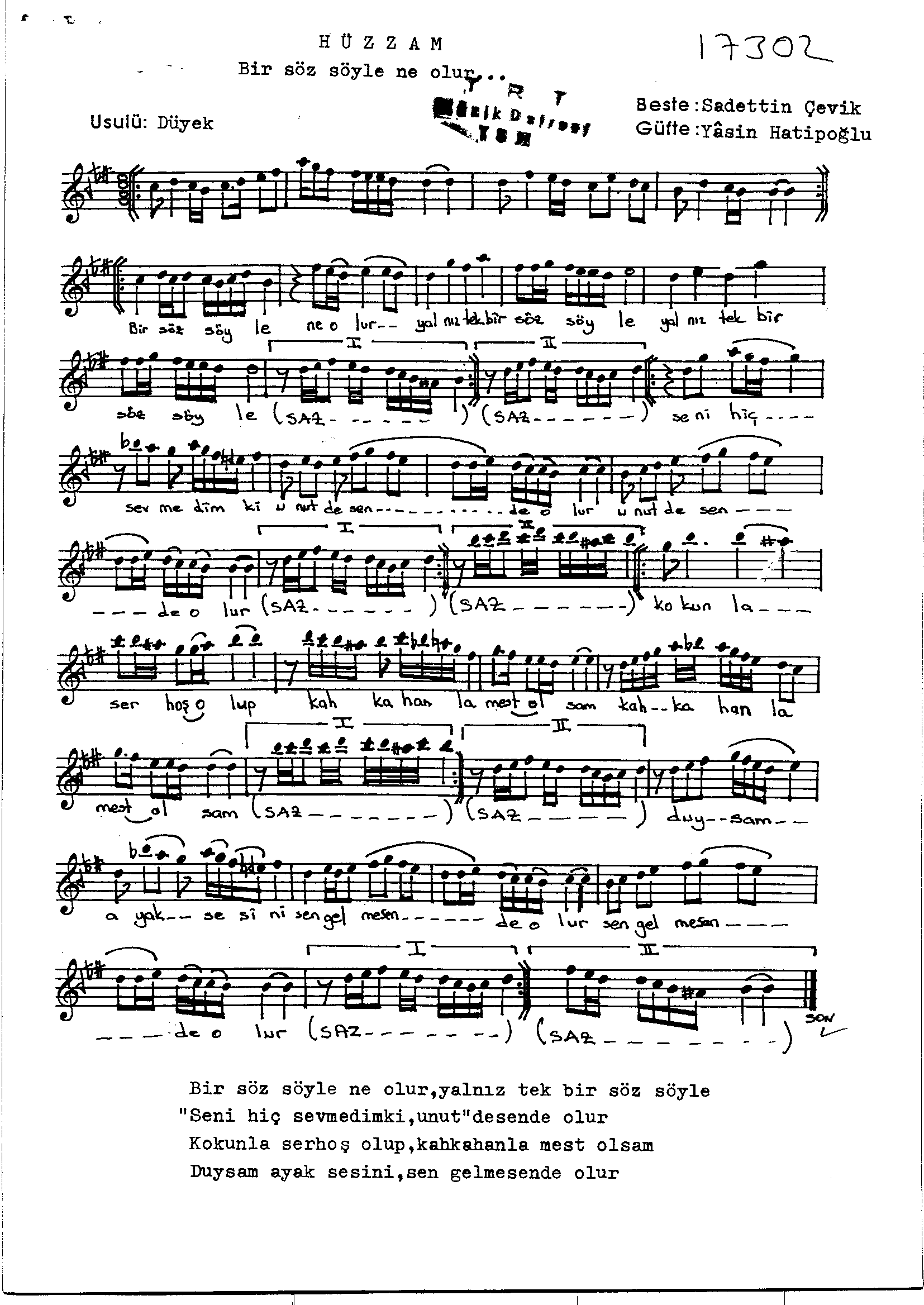 Sarki Adi: Bir söz söyle ne olur yalnız tek bir söz söyle