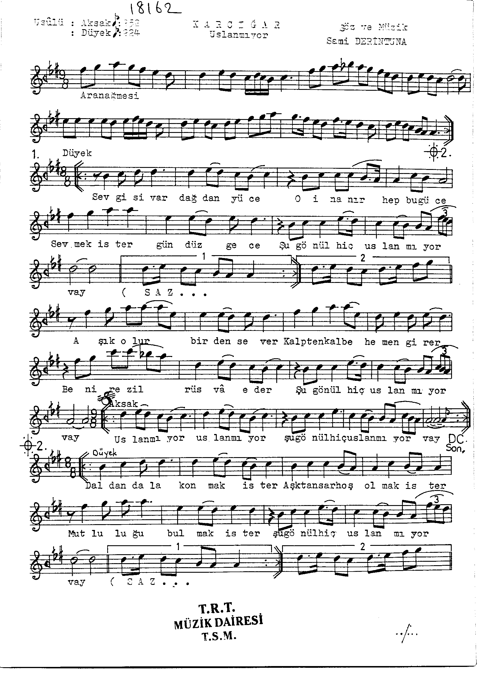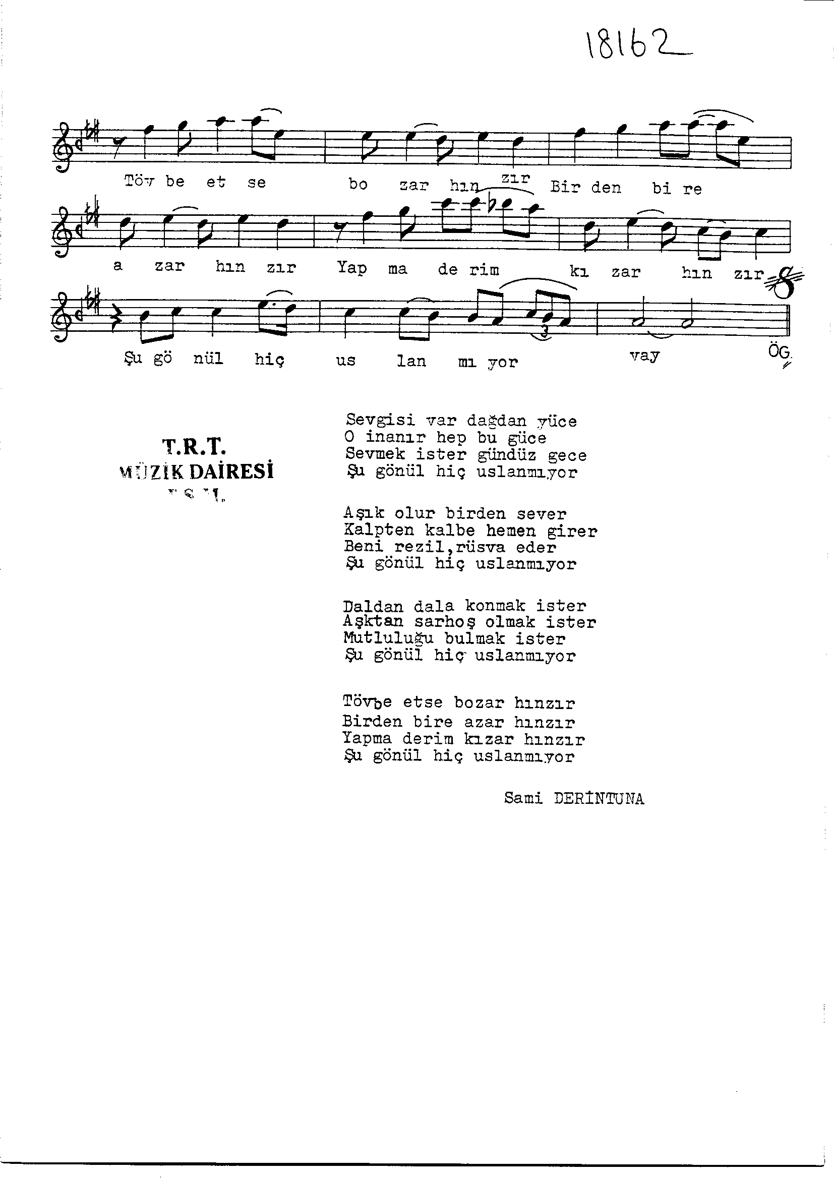 Sarki Adi: Sevgisi var dağdan yüce o inanır hep o güce