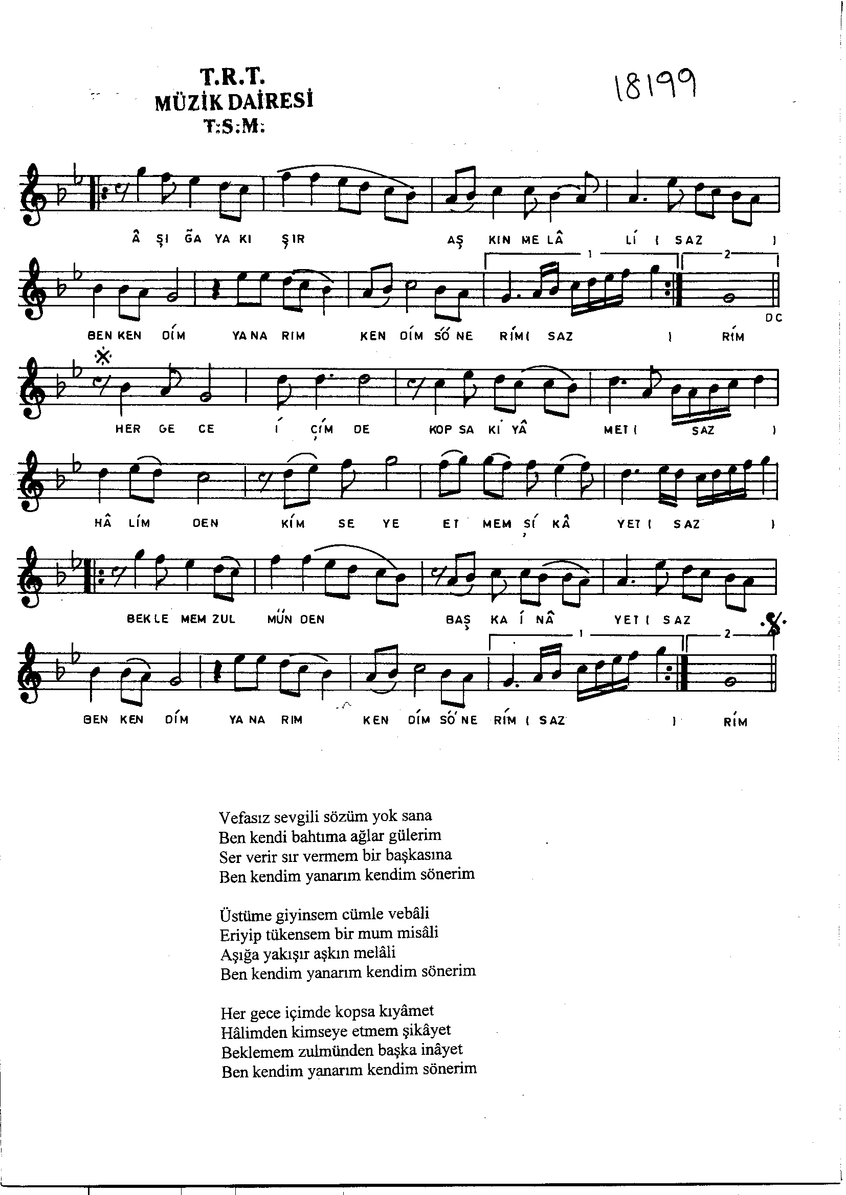 Sarki Adi: Vefâsız sevgili sözüm yok sana ben kendi bahtıma ağlar gülerim
