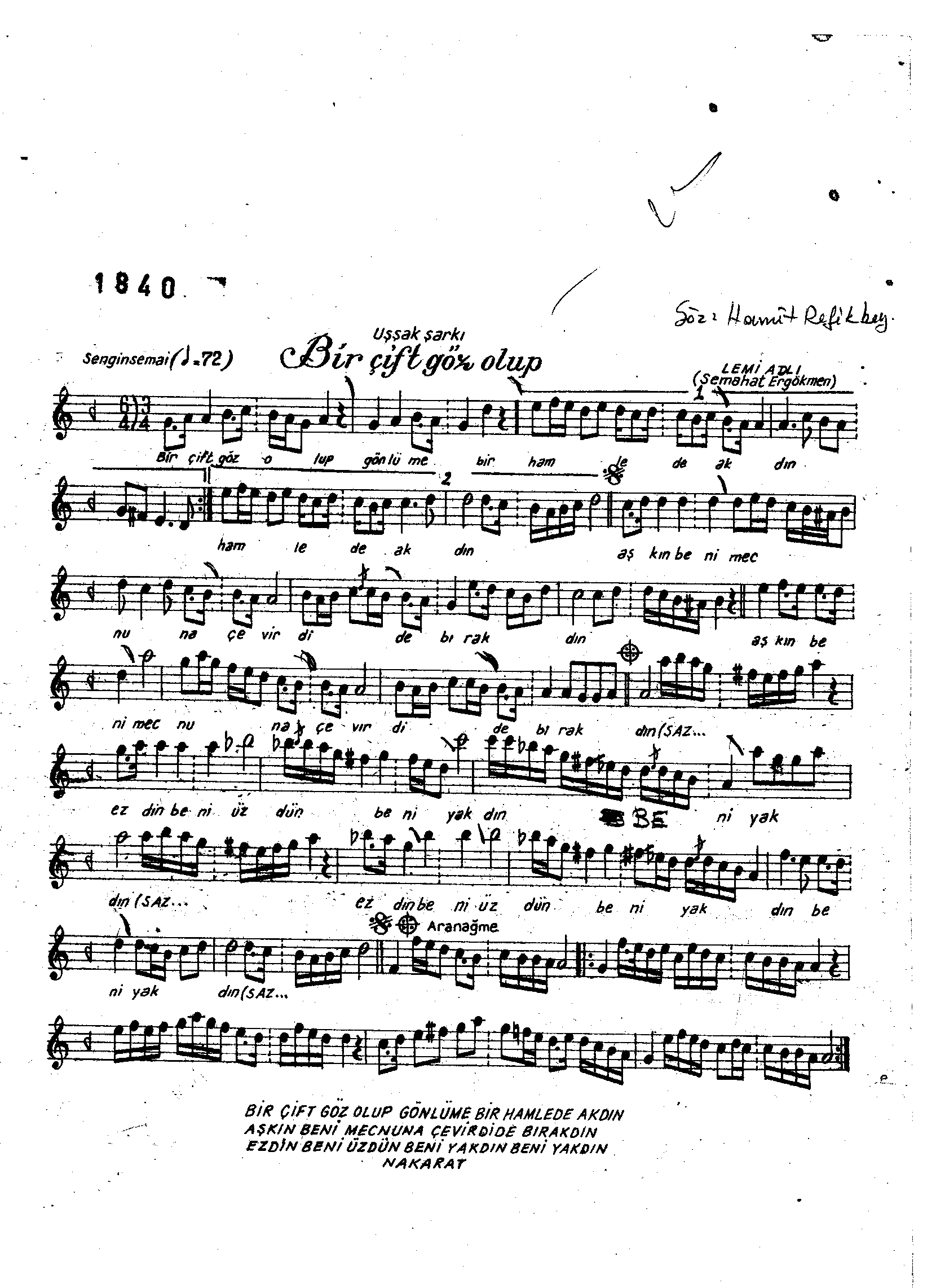 Sarki Adi: Bir çift göz olup gönlüme bir hamlede aktın