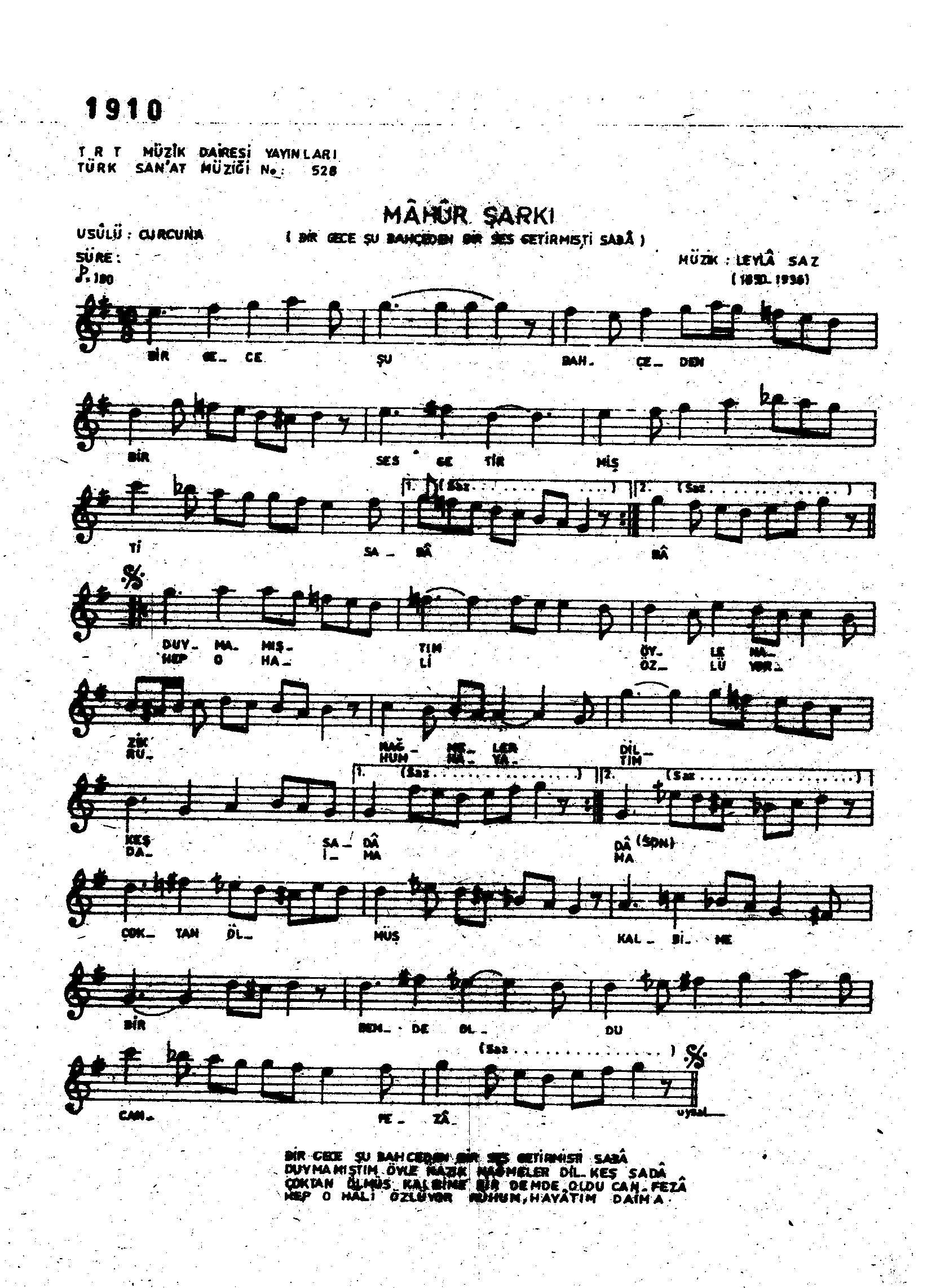 Sarki Adi: Bir gece şu bahçeden bir ses getirmişti sabâ