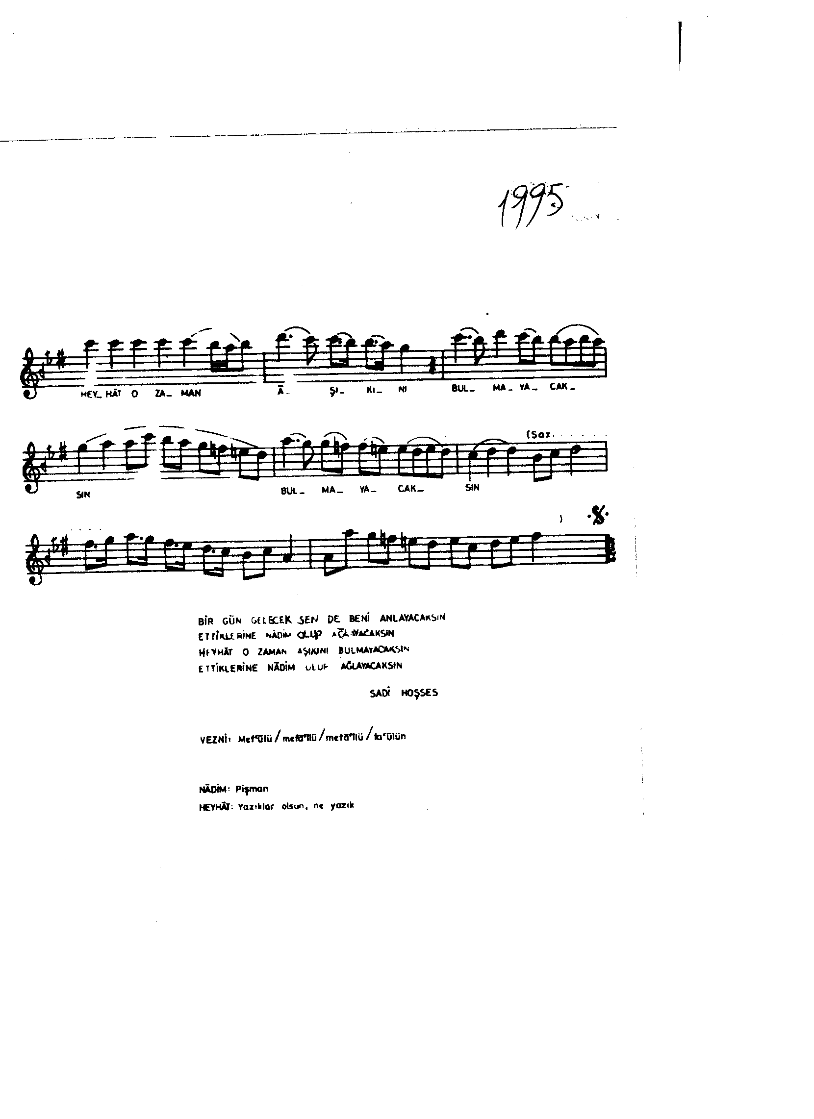 Sarki Adi: Bir gün gelecek sen de beni anlayacaksın
