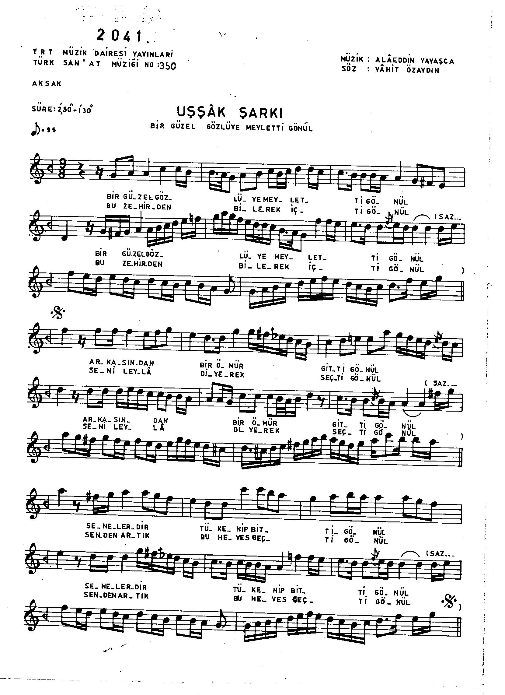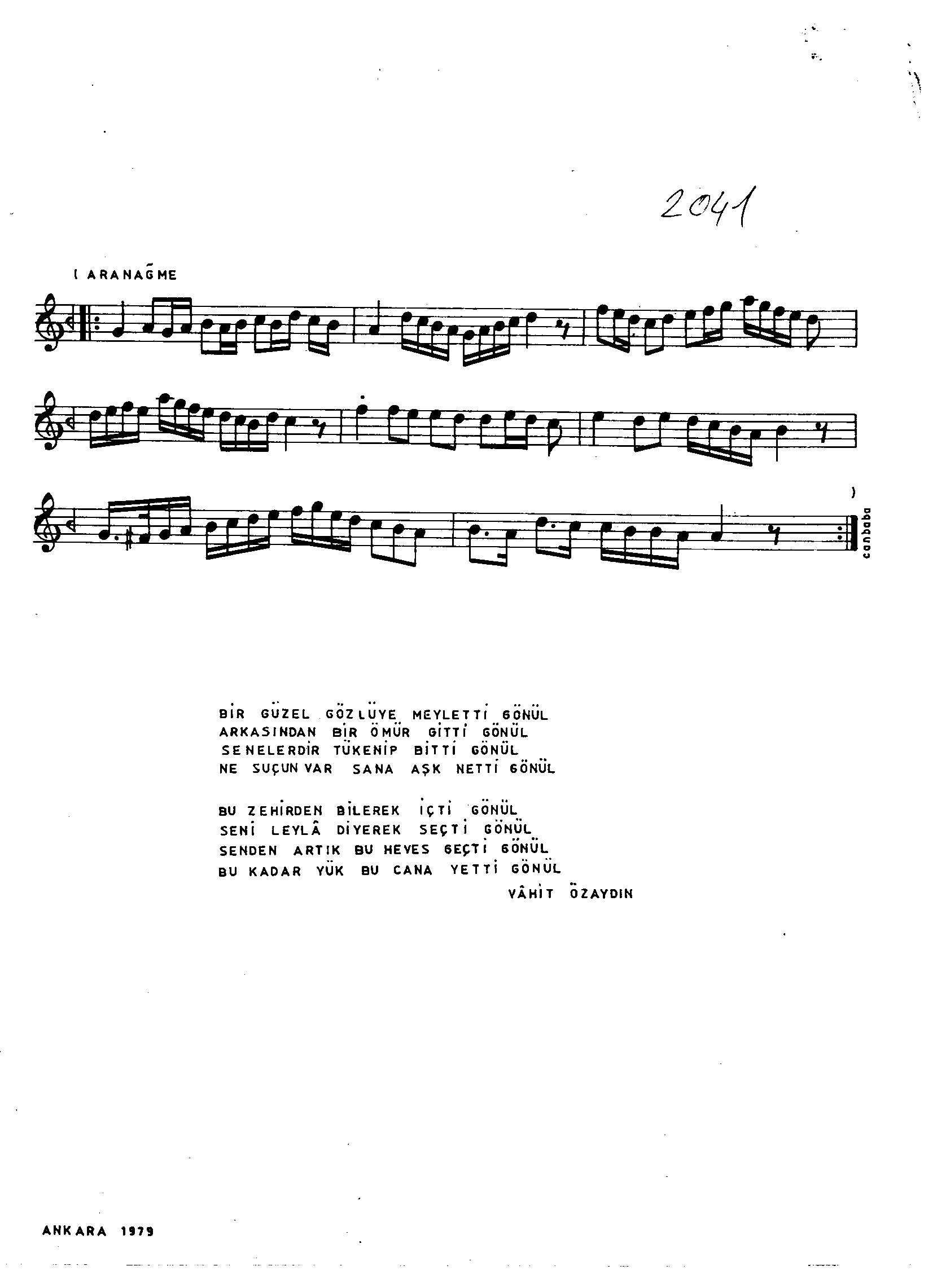 Sarki Adi: Bir güzel gözlüye meyl etti gönül