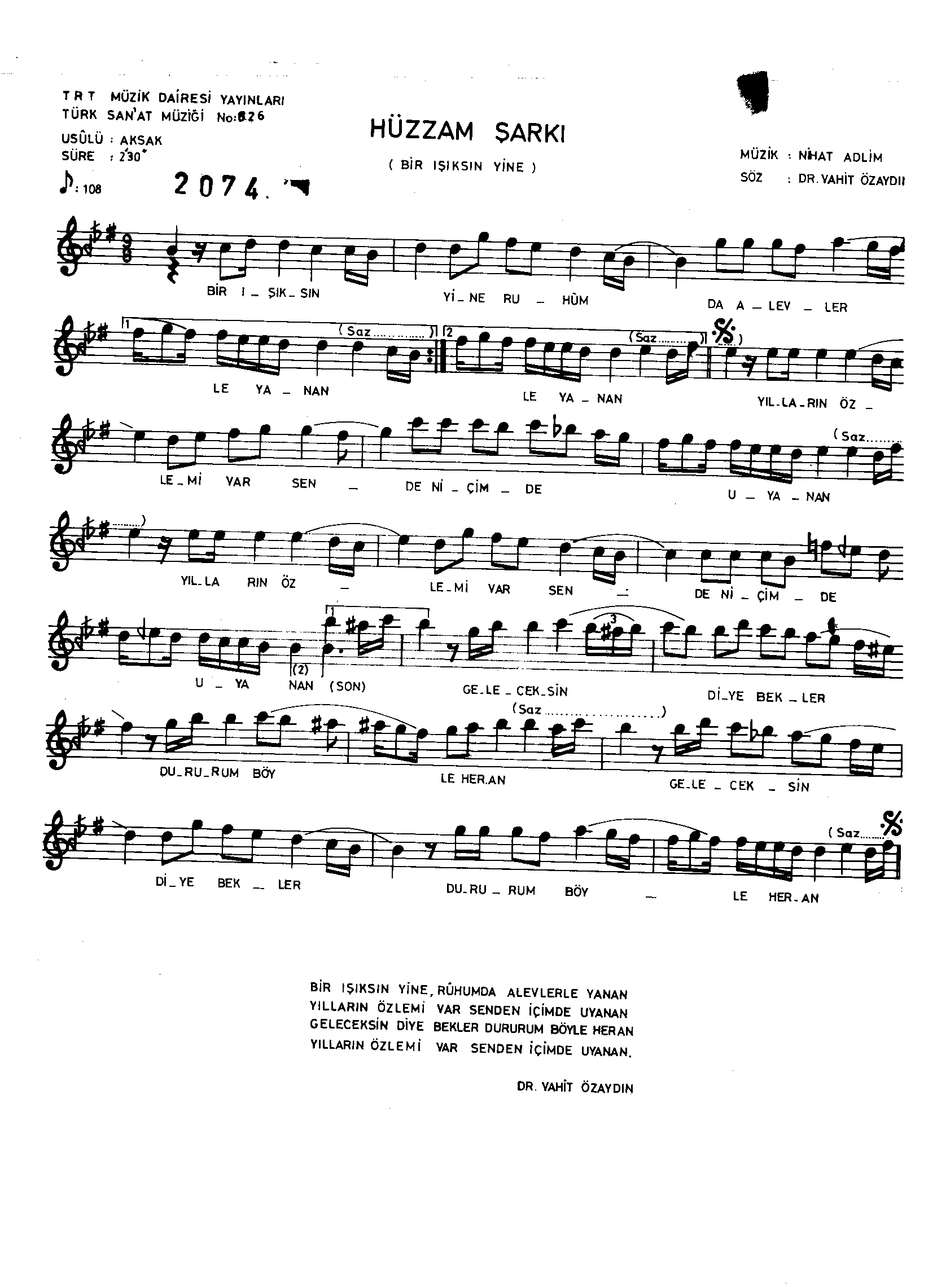 Sarki Adi: Bir ışıksın yine rûhumda alevlerle yanan