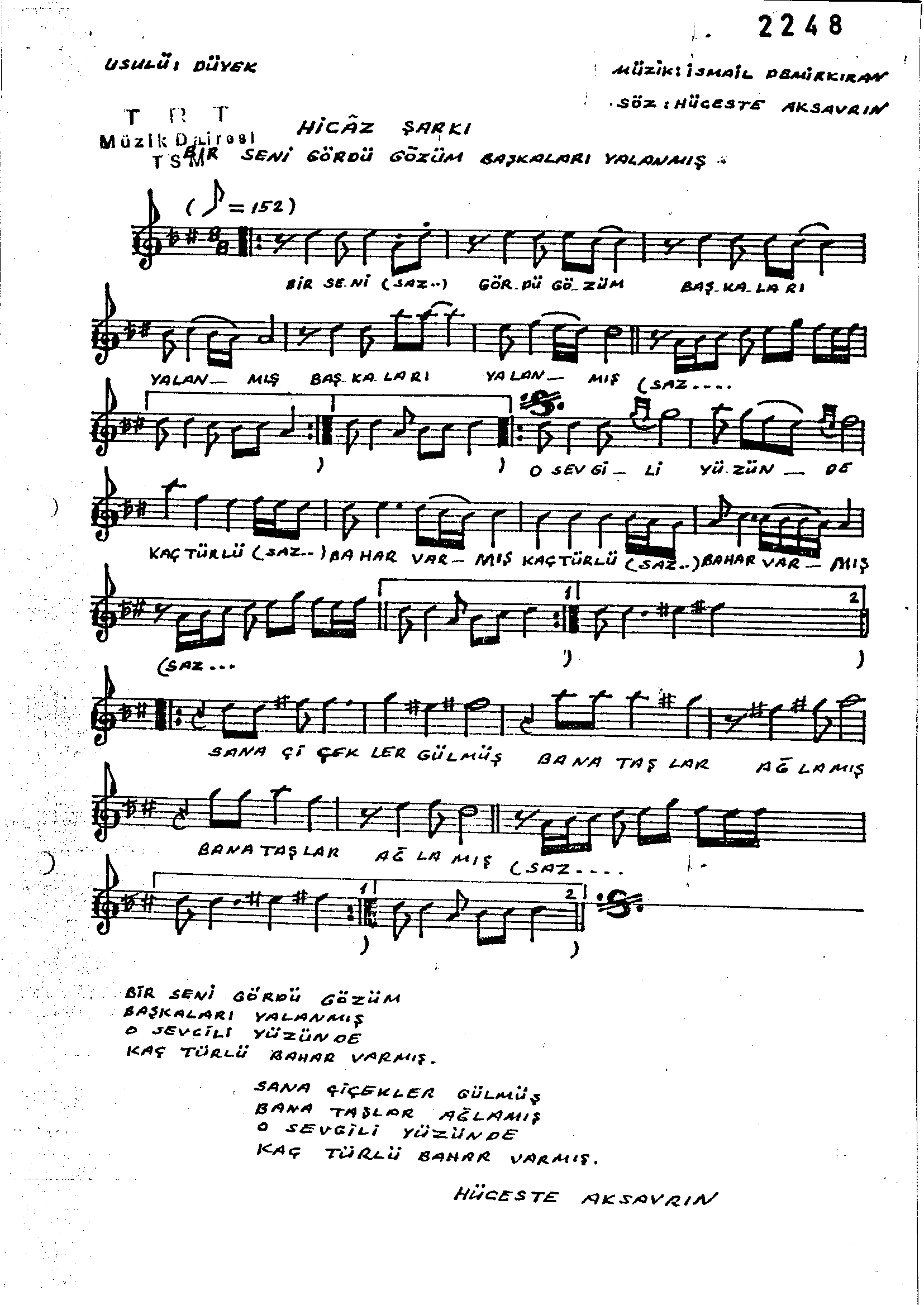 Sarki Adi: Bir seni gördü gözüm başkaları yalanmış