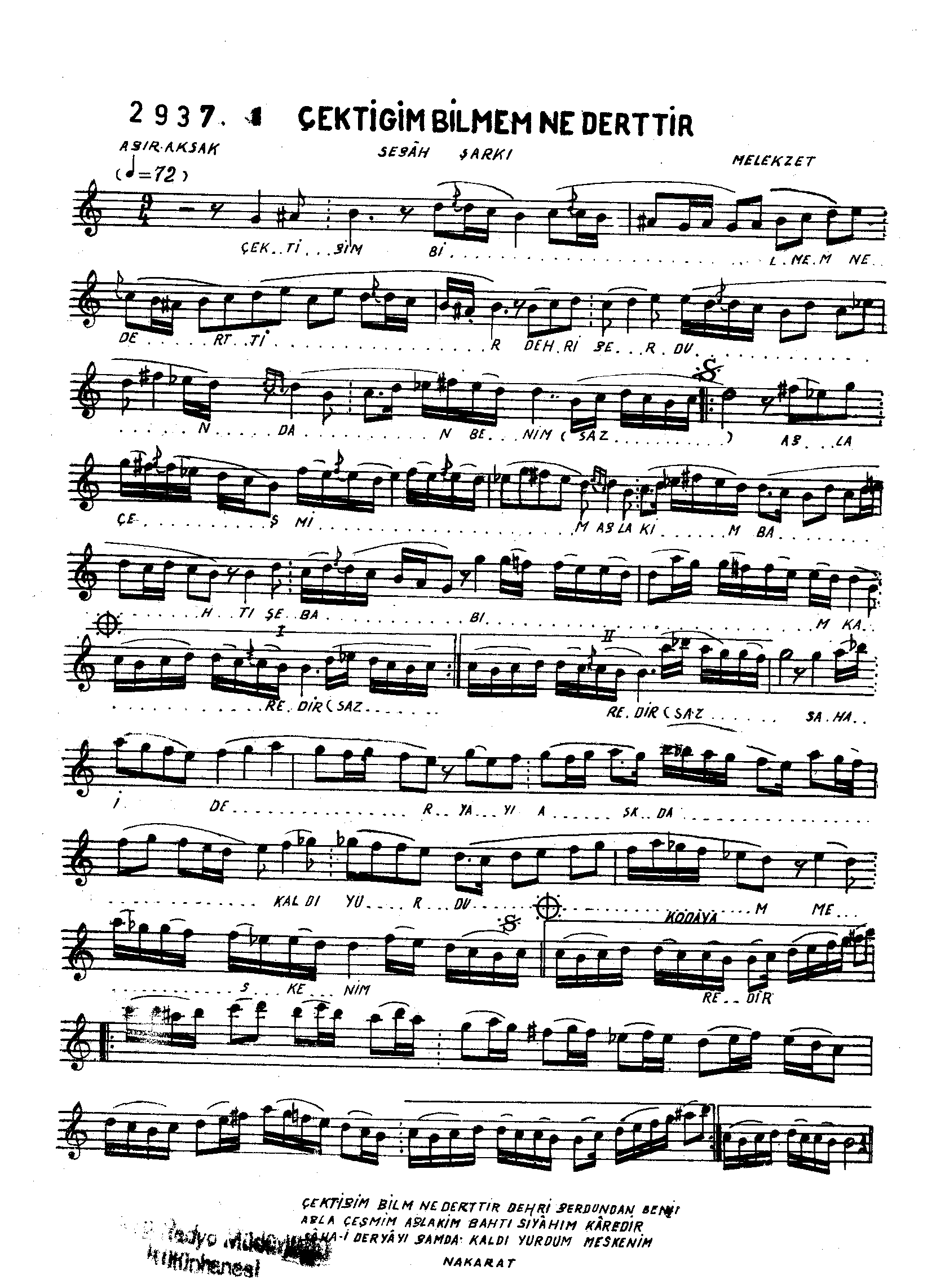 Sarki Adi: Çektiğim bilmem nedendir dehr-i gerdundan benim