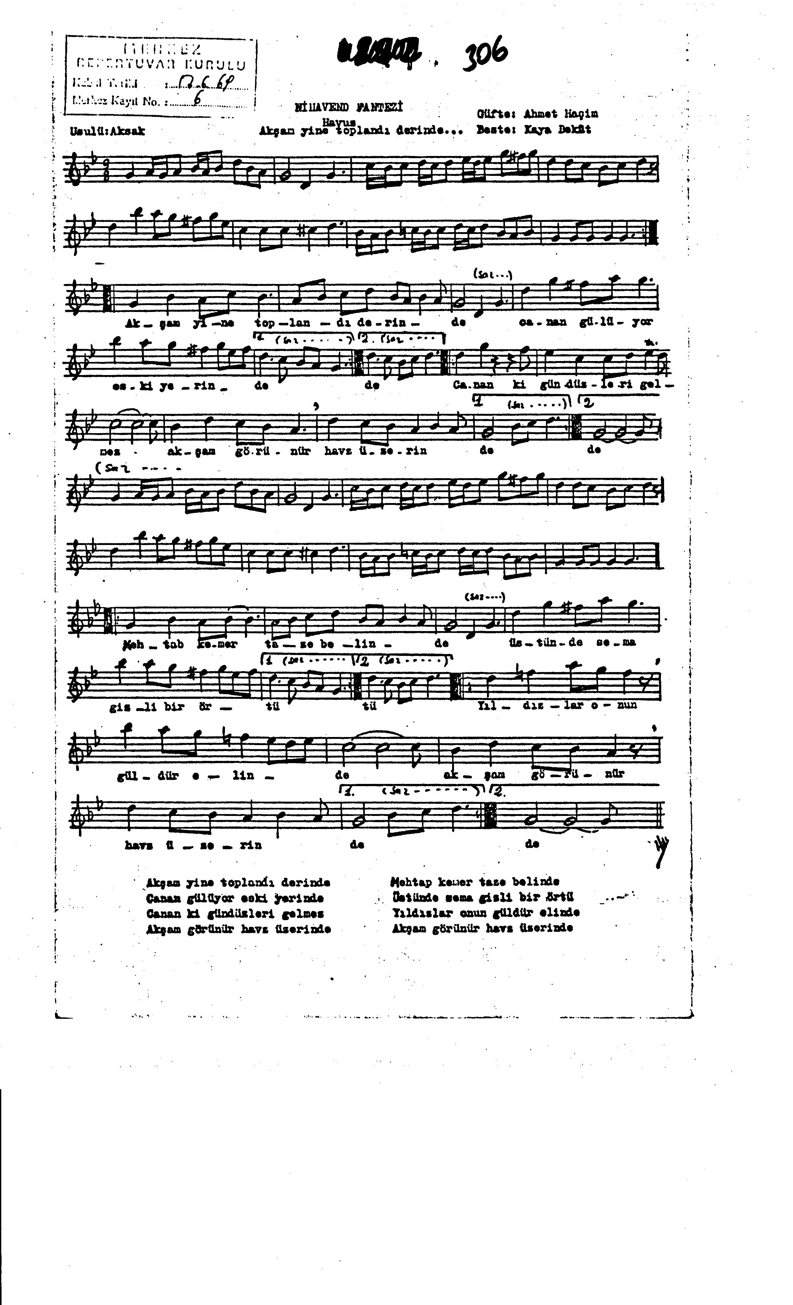 Sarki Adi: Akşam yine toplandı derinde (HAVUZ)