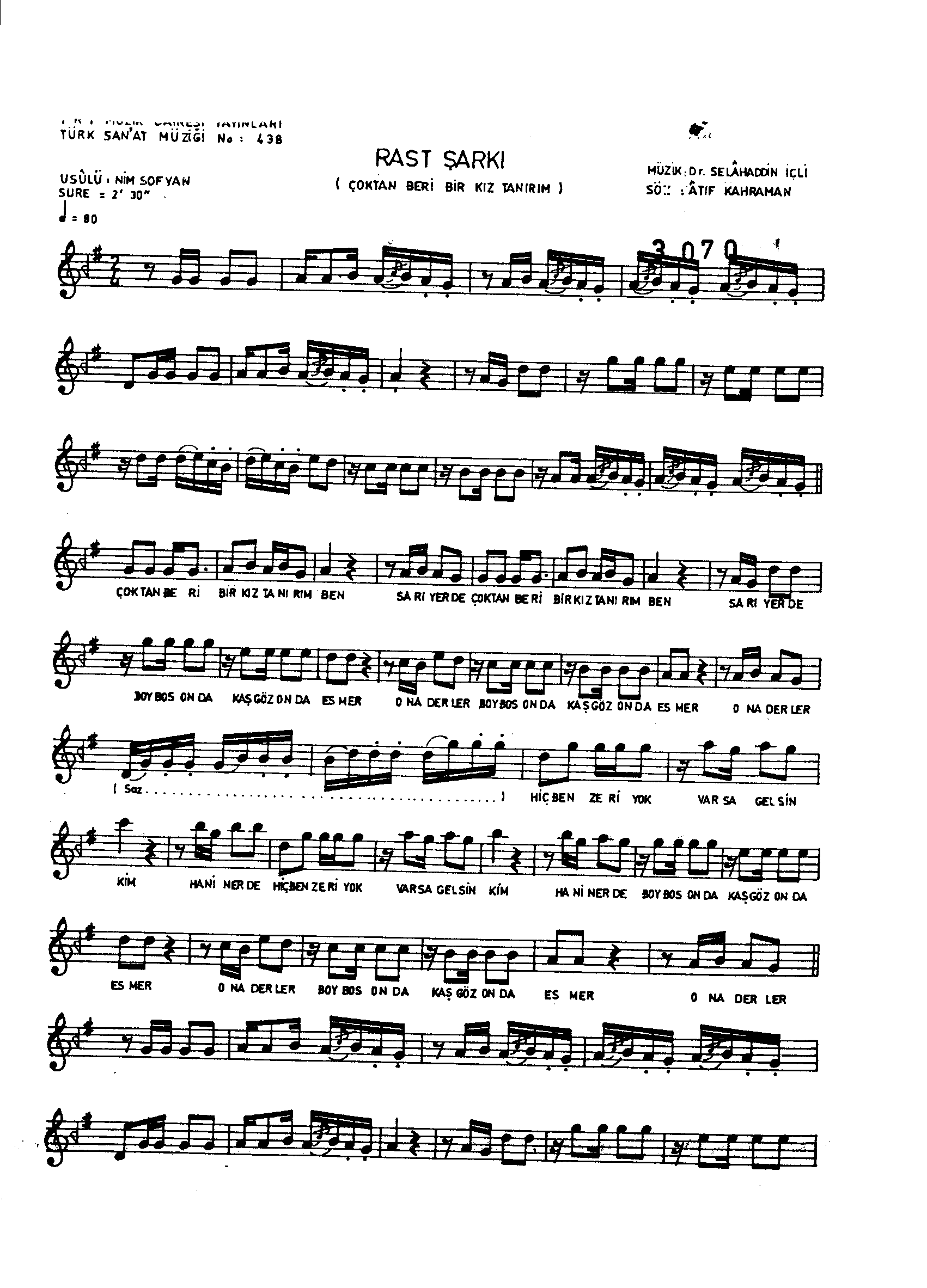 Sarki Adi: Çoktan beri bir kız tanırım ben Sarıyer'de
