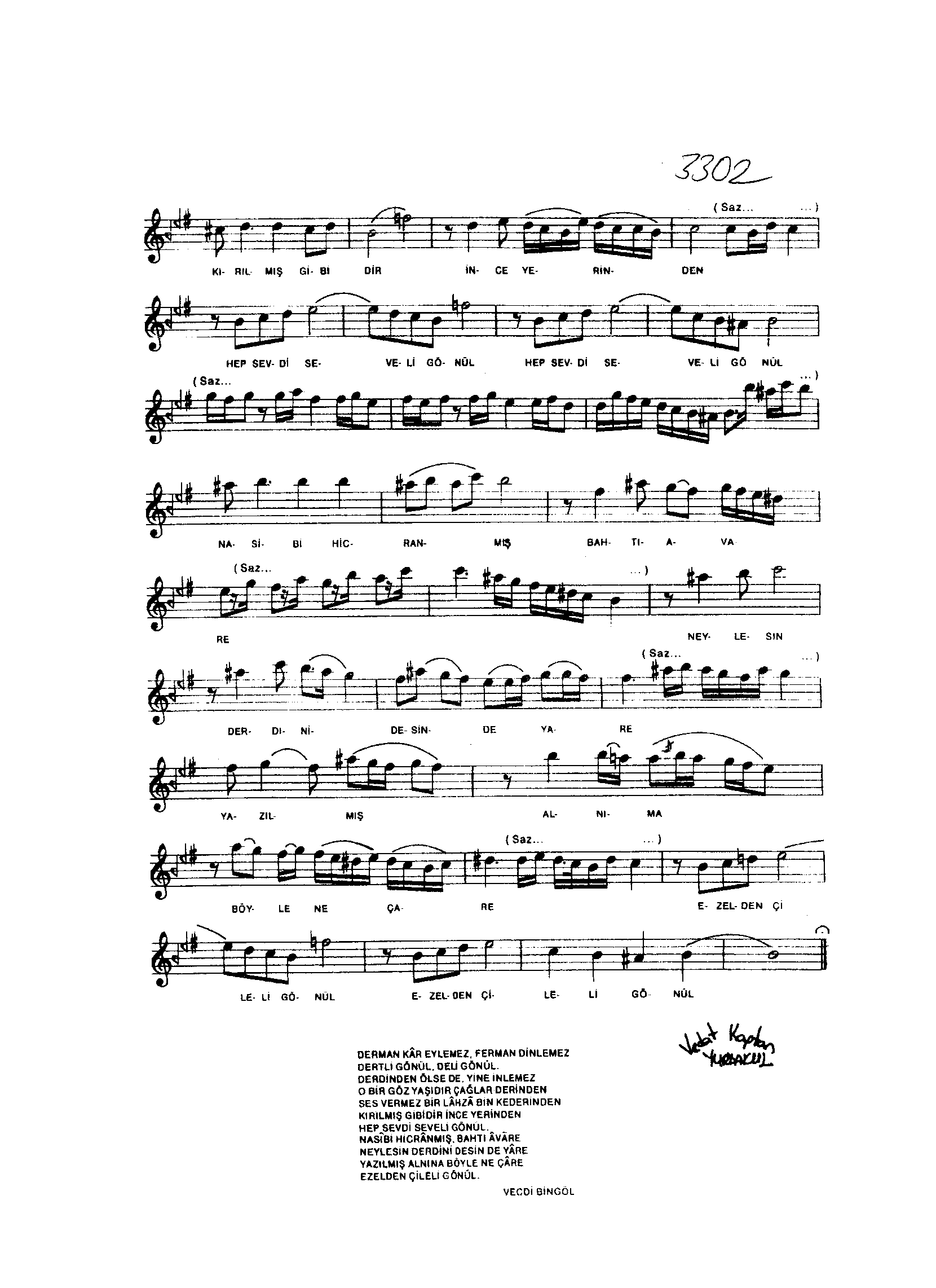 Sarki Adi: Derman kâr eylemez