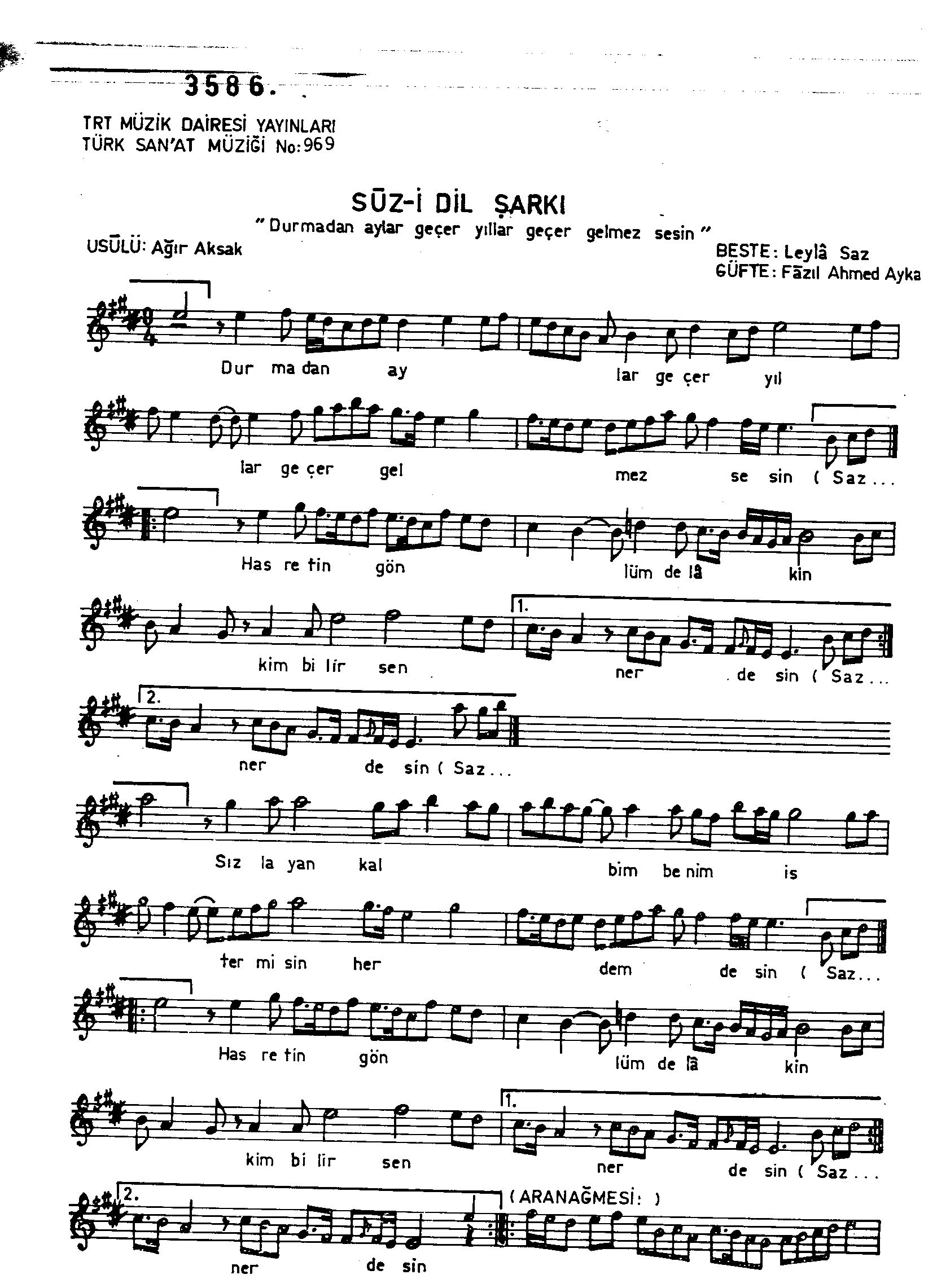 Sarki Adi: Durmadan aylar geçer yıllar geçer gelmez sesin