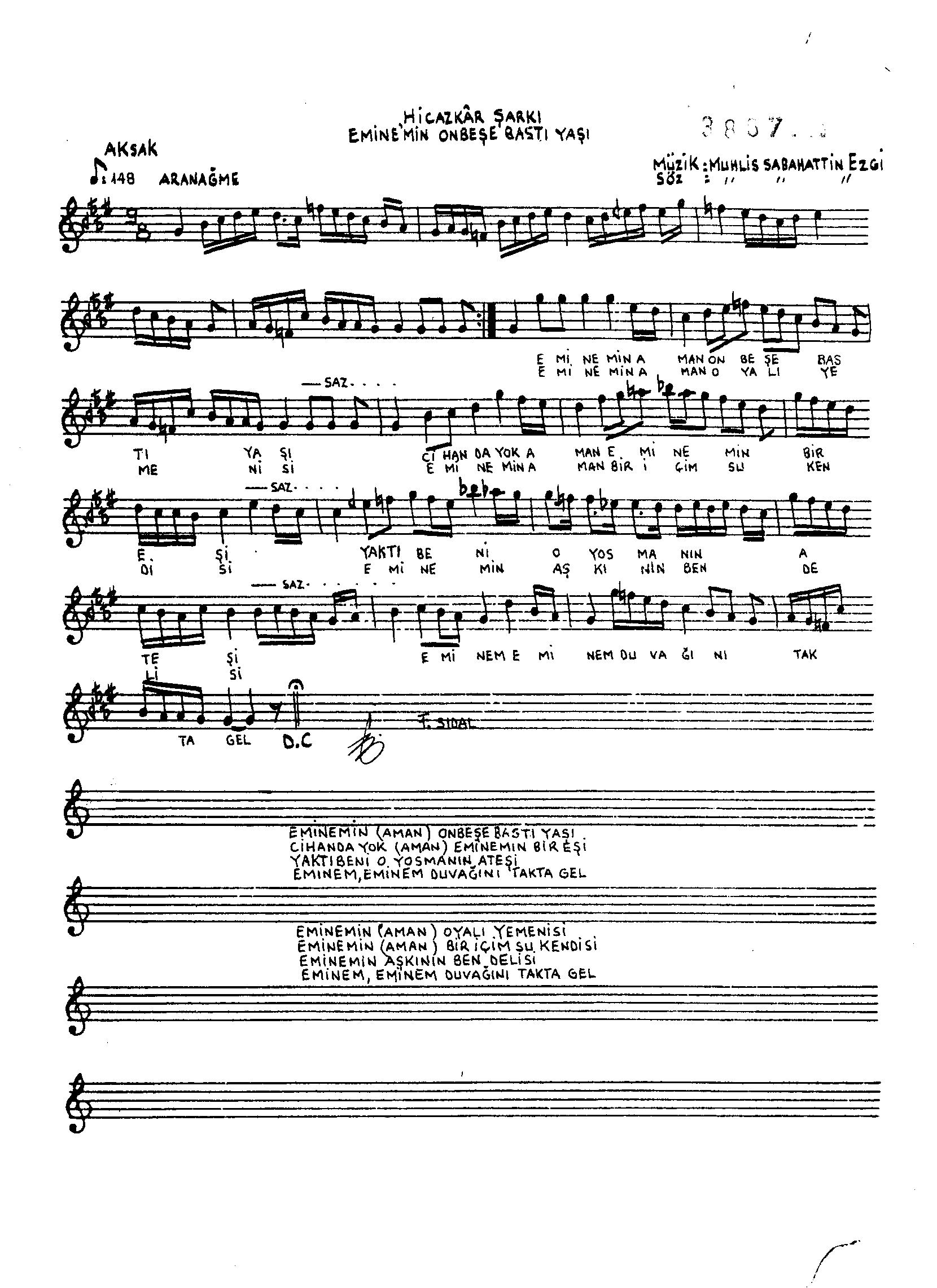 Sarki Adi: Emine'min onbeşe vardı yaşı