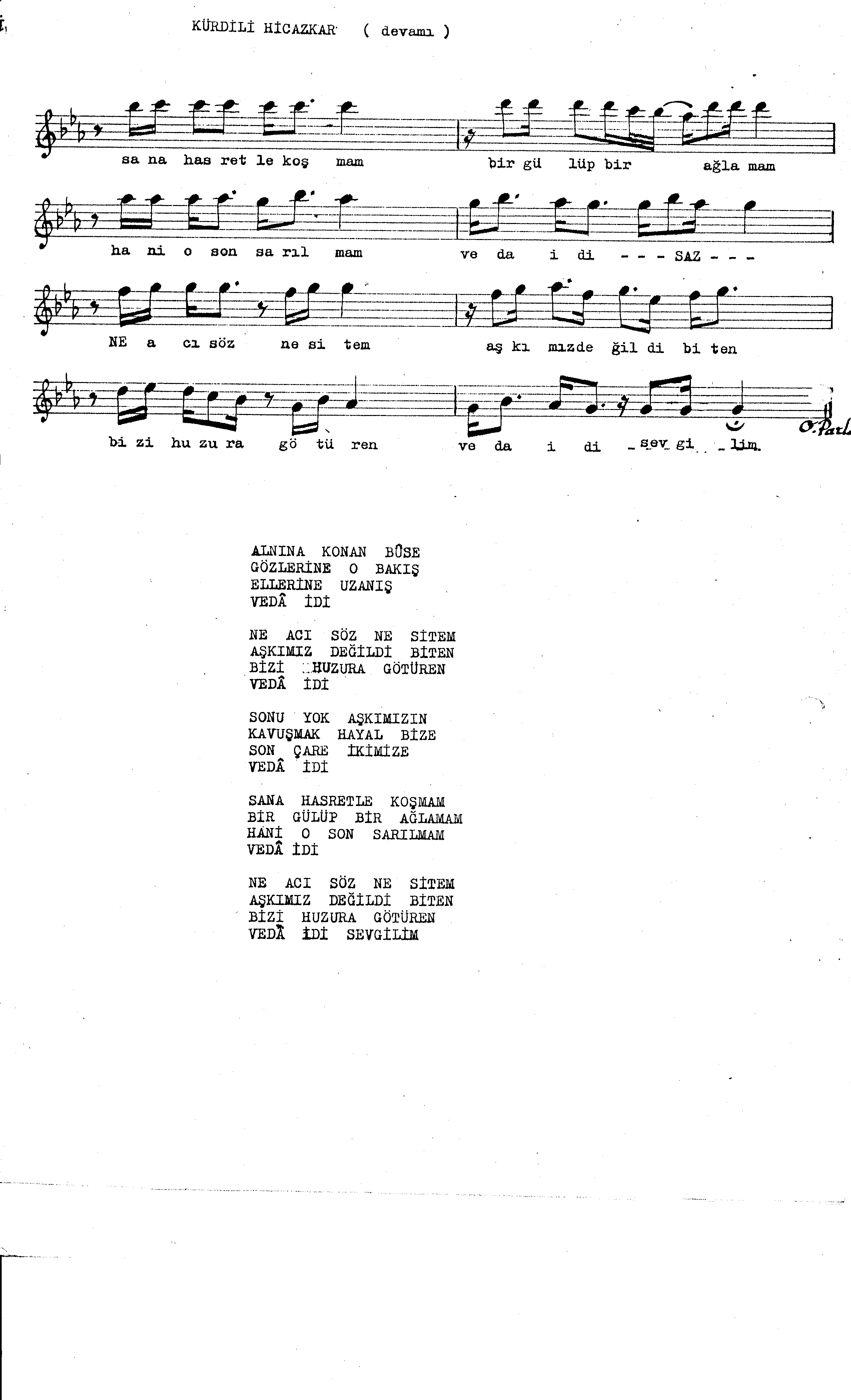 Sarki Adi: Alnına konan bûse gözlerine o bakış