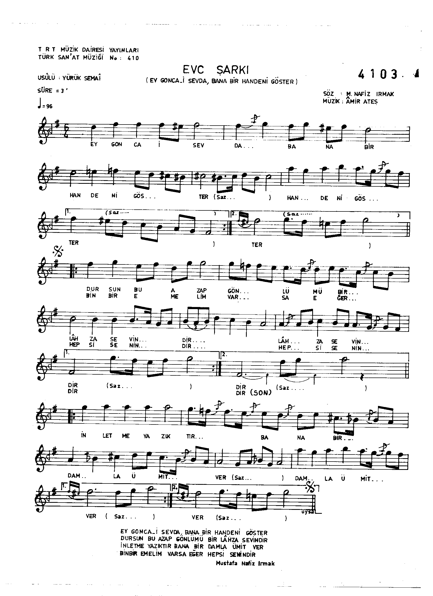 Sarki Adi: Ey gonce-i sevdâ bana bir handeni göster
