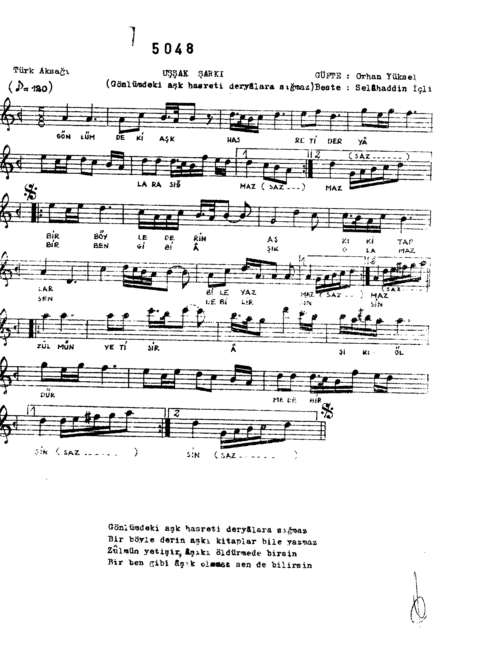 Sarki Adi: Gönlümdeki aşk hasreti deryâlara sığmaz
