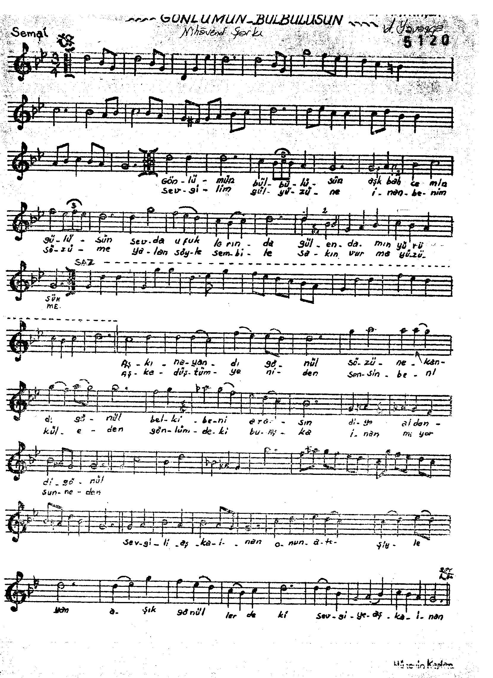 Sarki Adi: Gönlümün bülbülüsün aşk bahçemin gülüsün