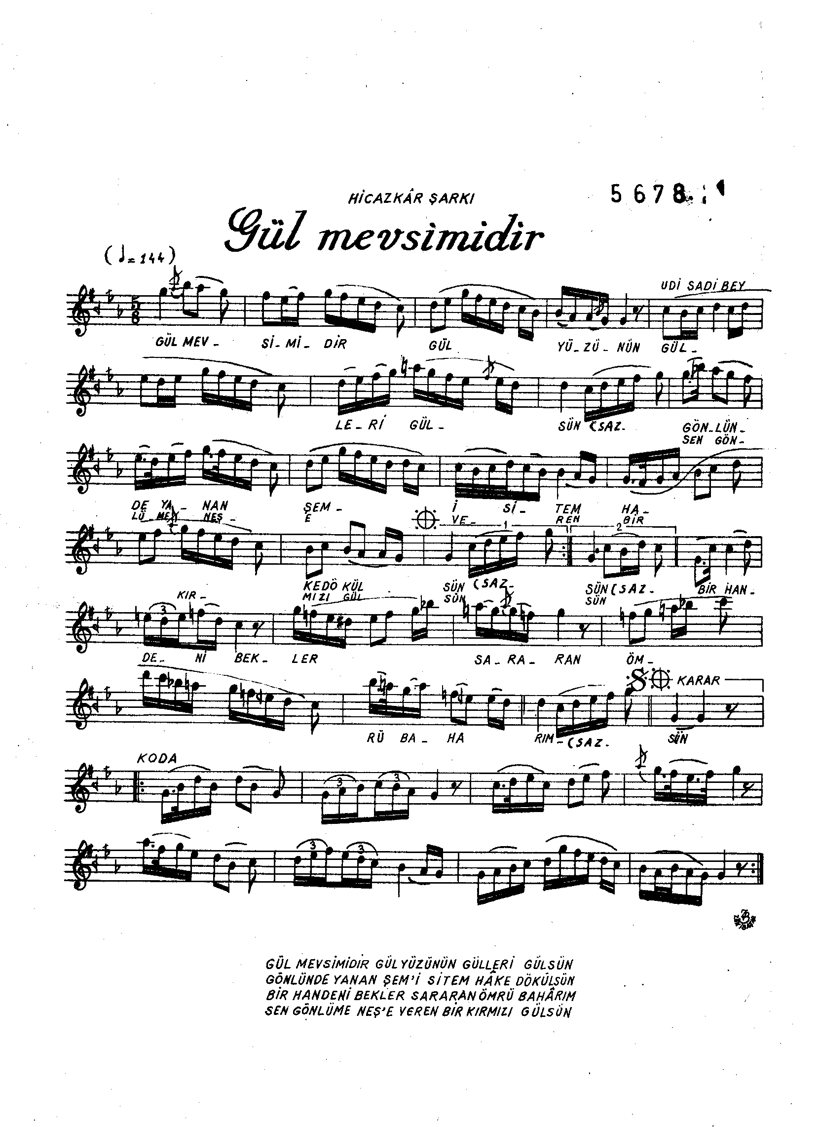 Sarki Adi: Gül mevsimidir gül yüzünün gülleri gülsün