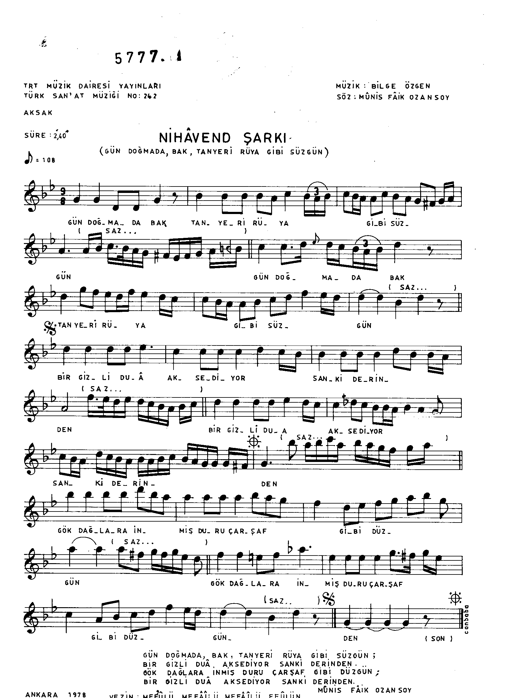 Sarki Adi: Gün doğmada bak tan yeri rüyâ gibi süzgün