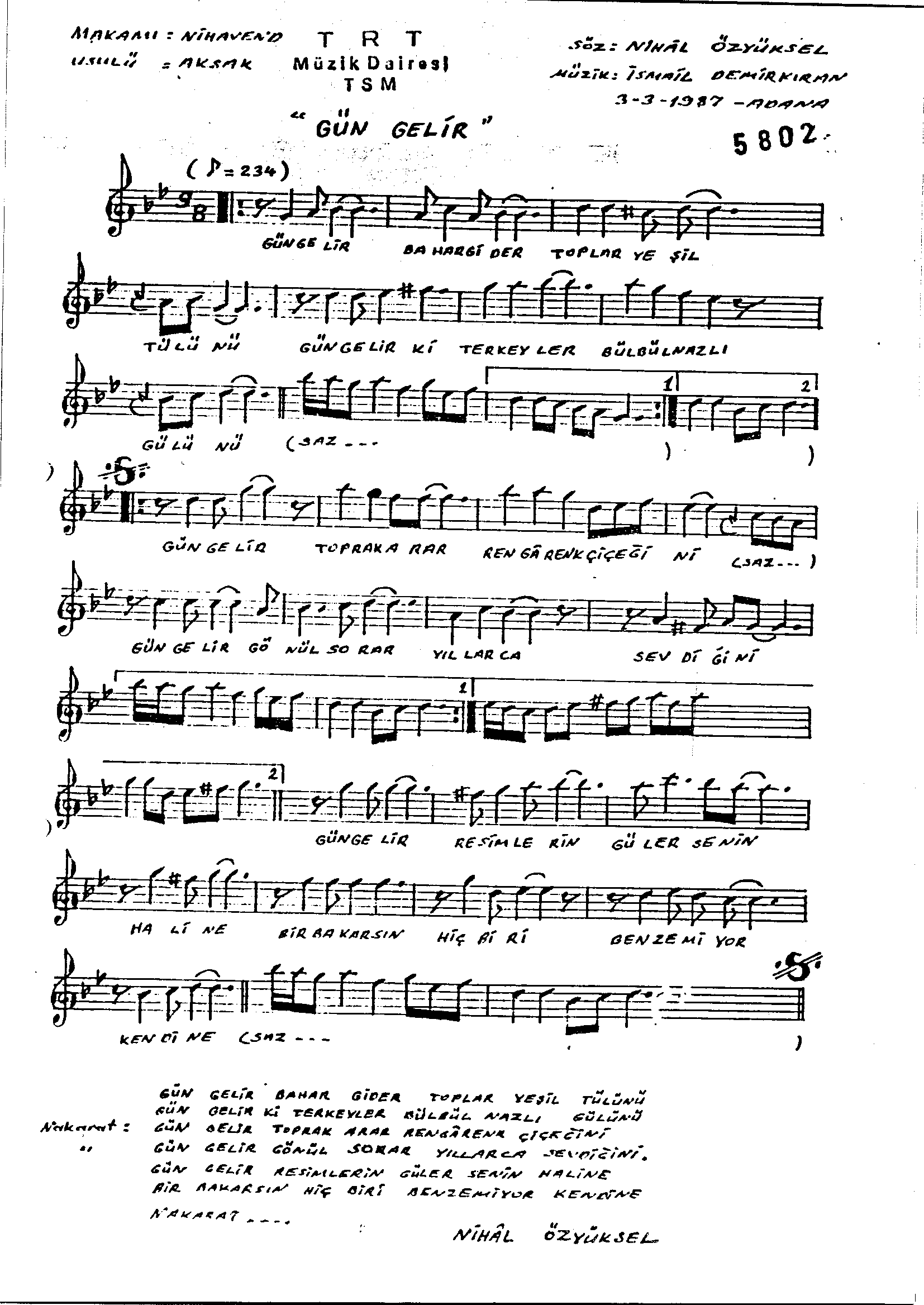Sarki Adi: Gün gelir bahar gider toplar yeşil tülünü