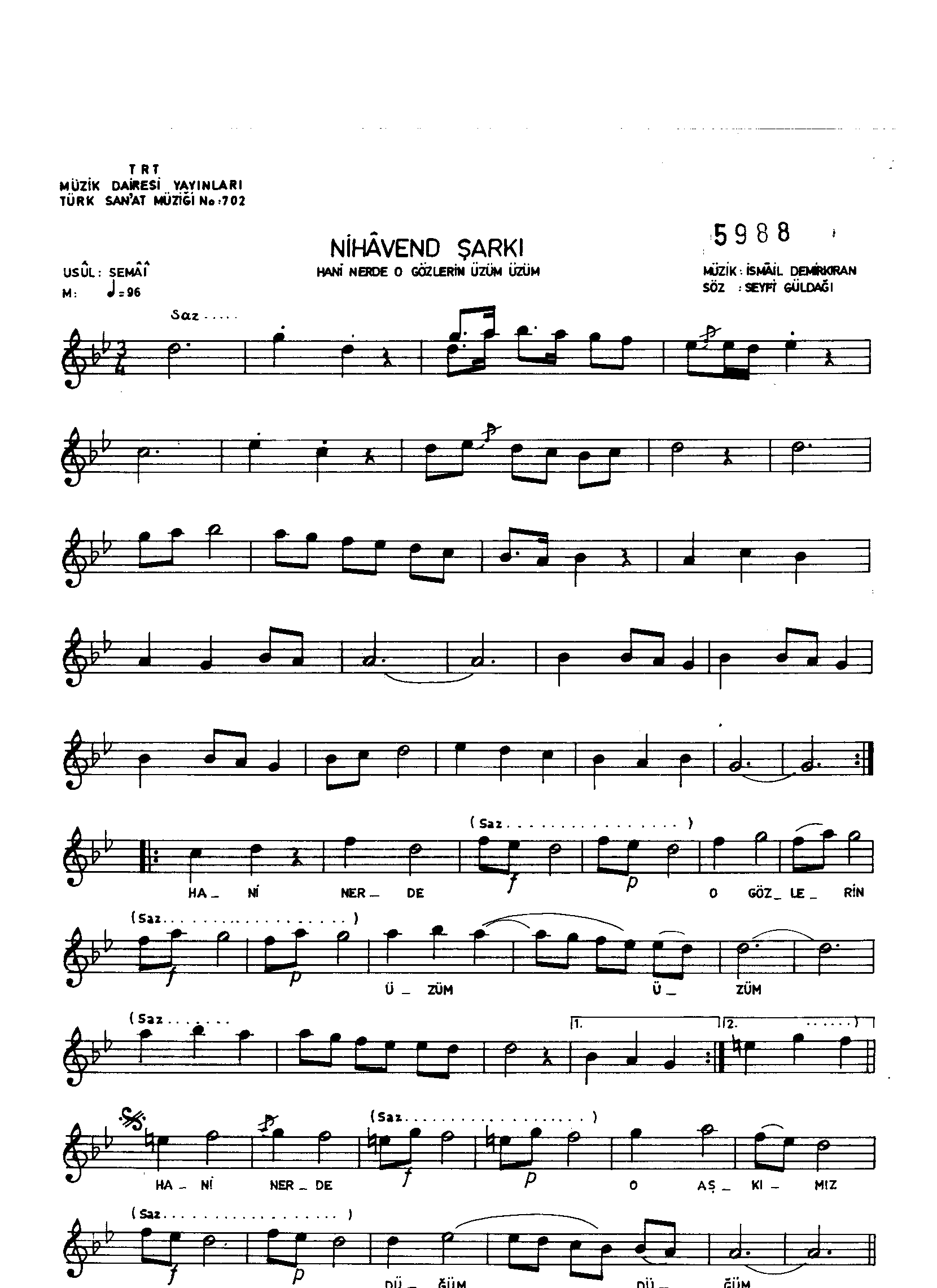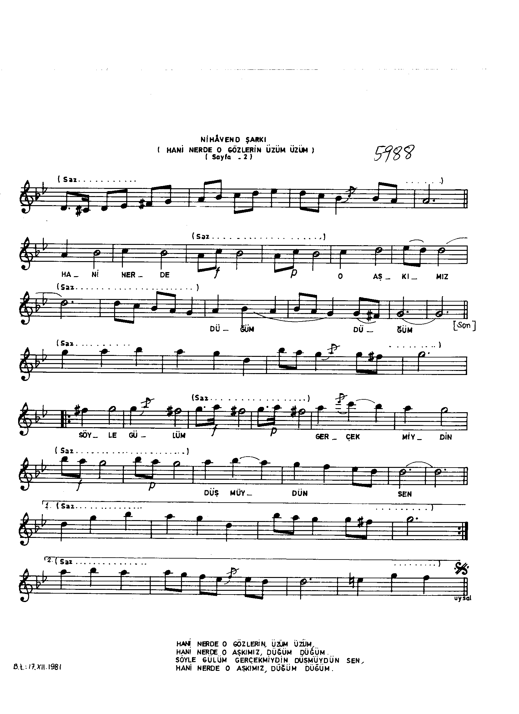 Sarki Adi: Hani nerde o gözlerin üzüm üzüm