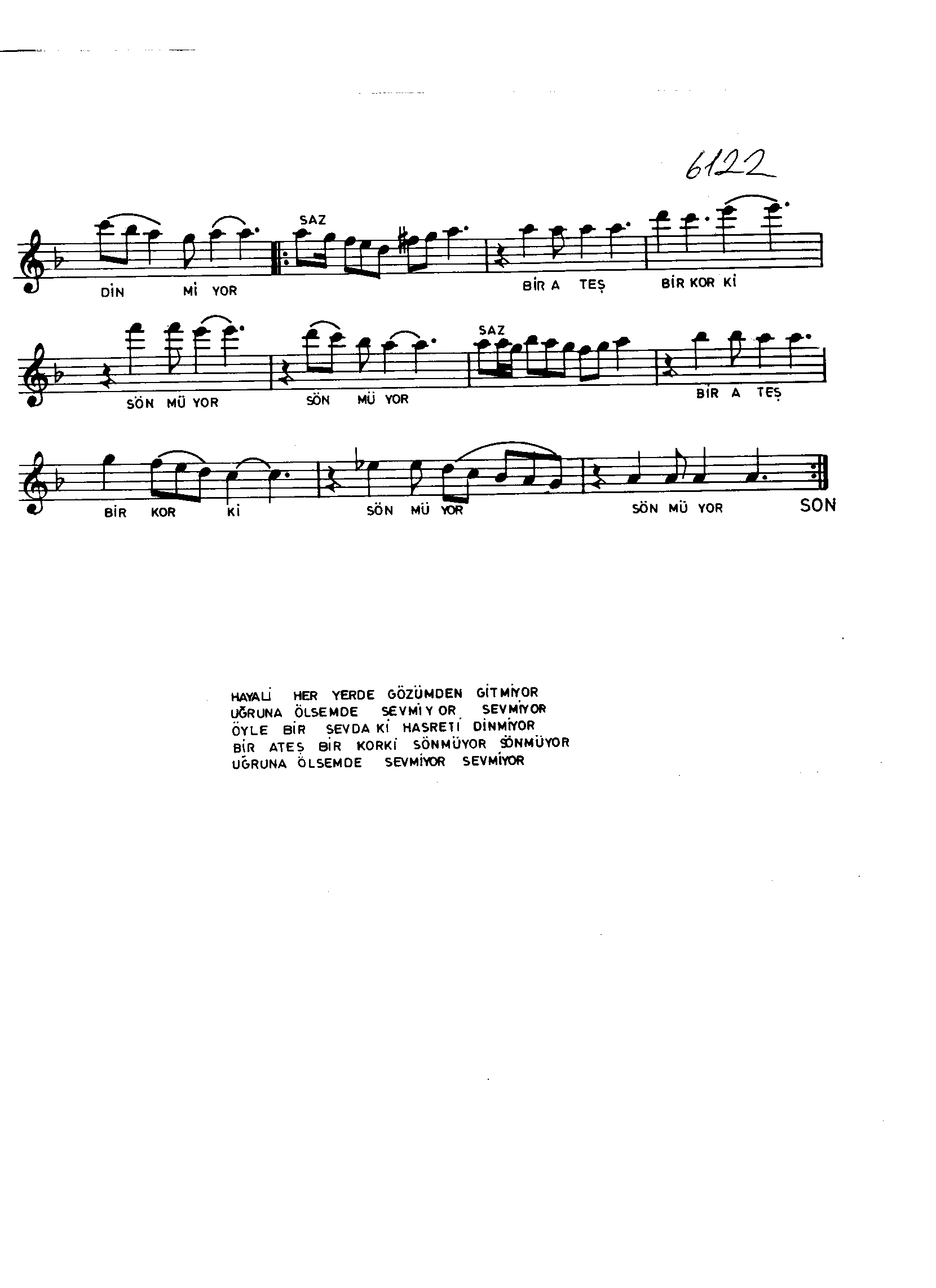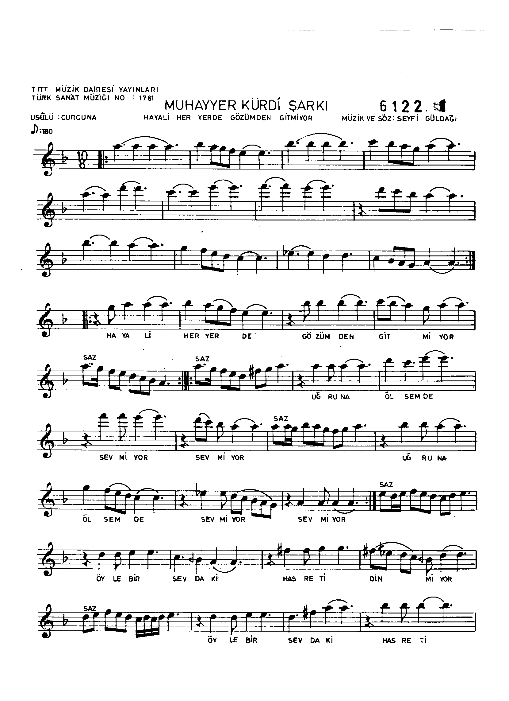 Sarki Adi: Hayâli her yerde gözümden gitmiyor