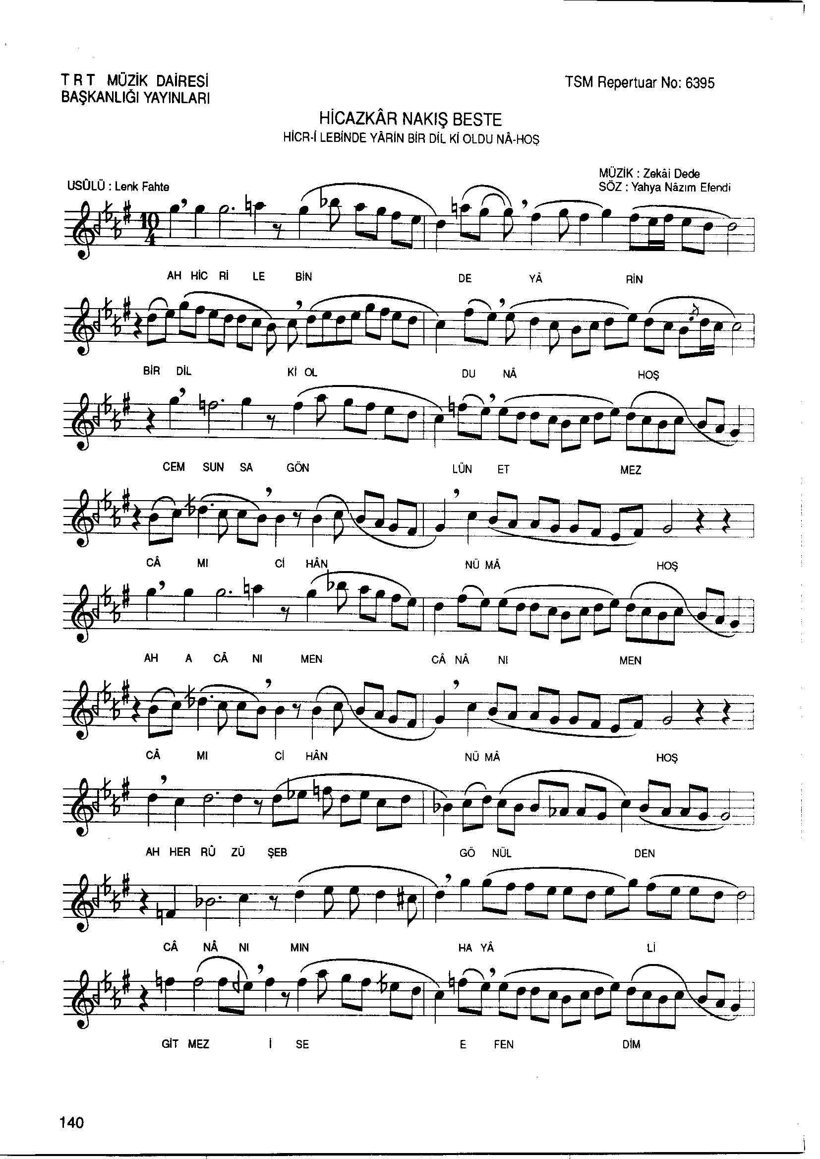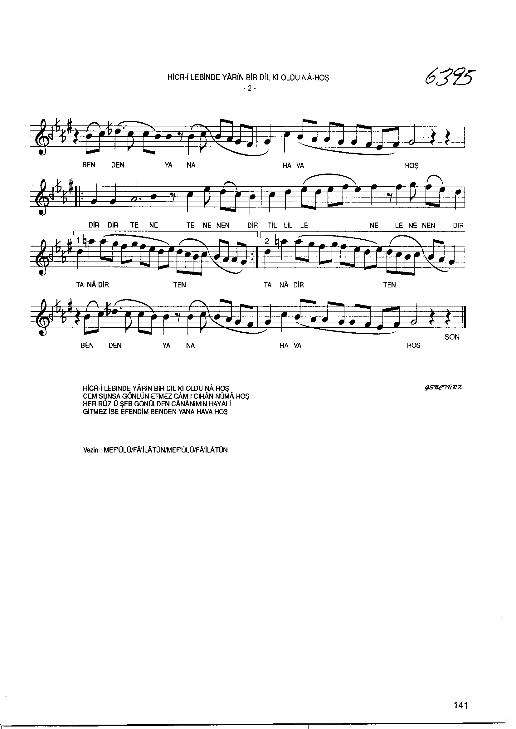 Sarki Adi: Hicr-i lebinde yârin bir dil ki oldu nâ-hoş