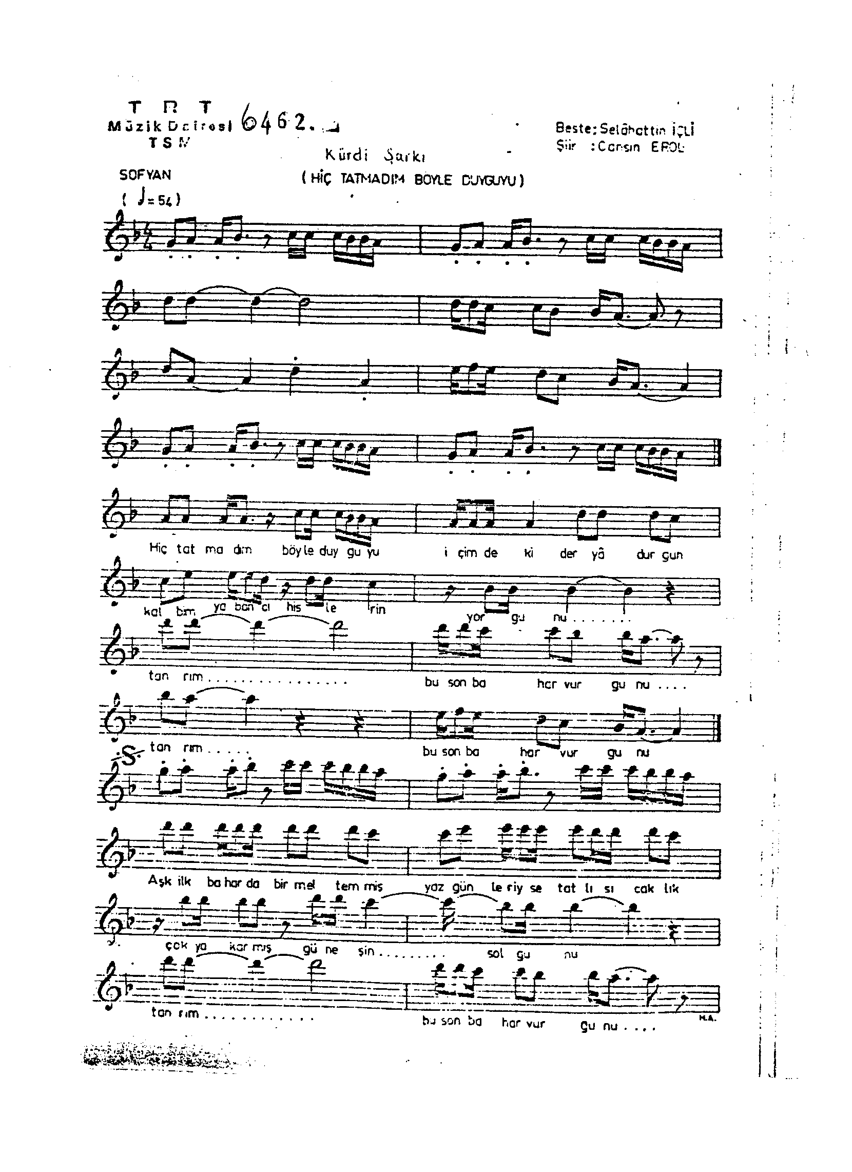 Sarki Adi: Hiç tatmadım böyle duyguyu