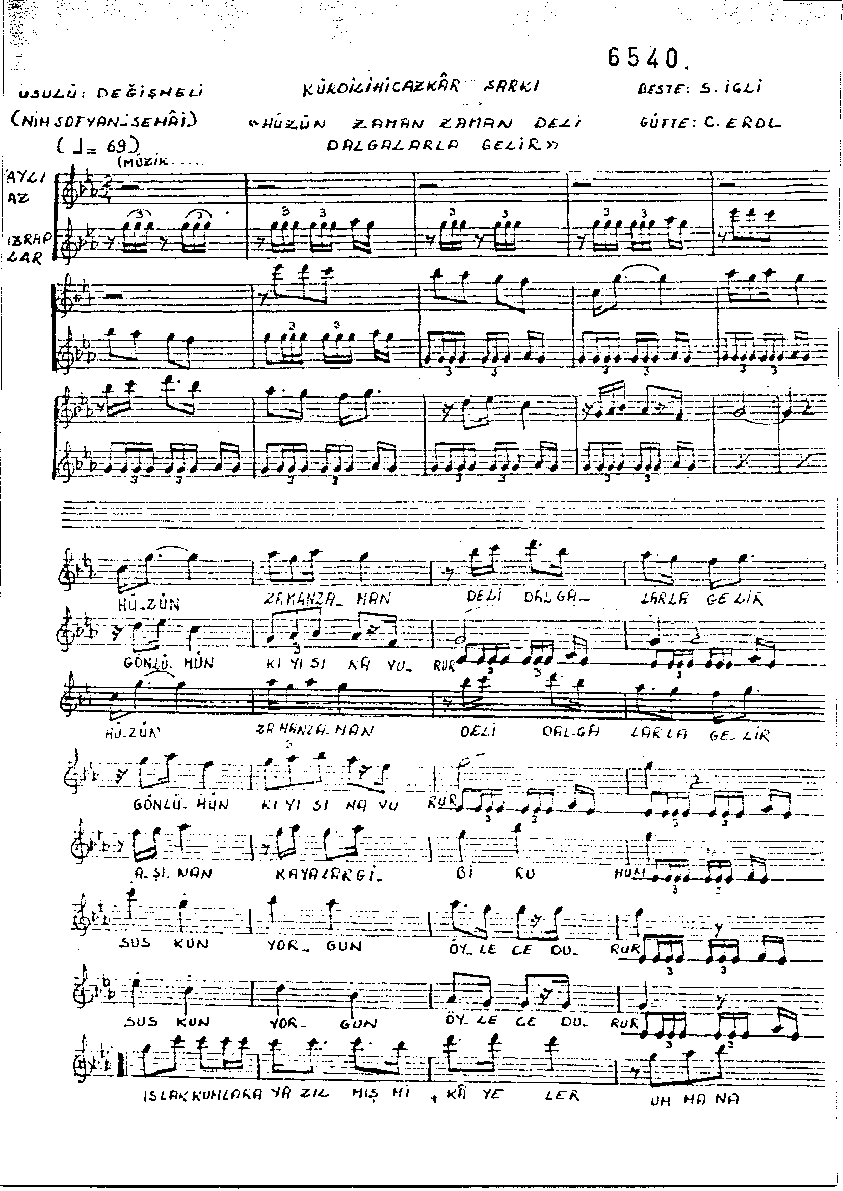 Sarki Adi: Hüzün zaman zaman deli dalgalarla gelir