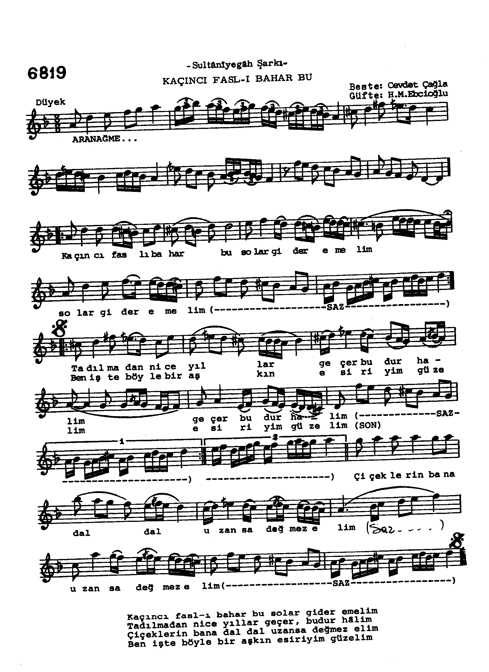 Sarki Adi: Kaçıncı fasl-ı bahar bu solar gider emelim